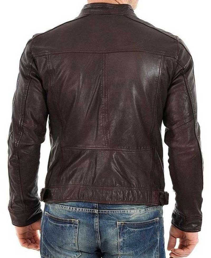 Men’s Motorcycle Style Casual Wear Dark Brown Leather Jacket