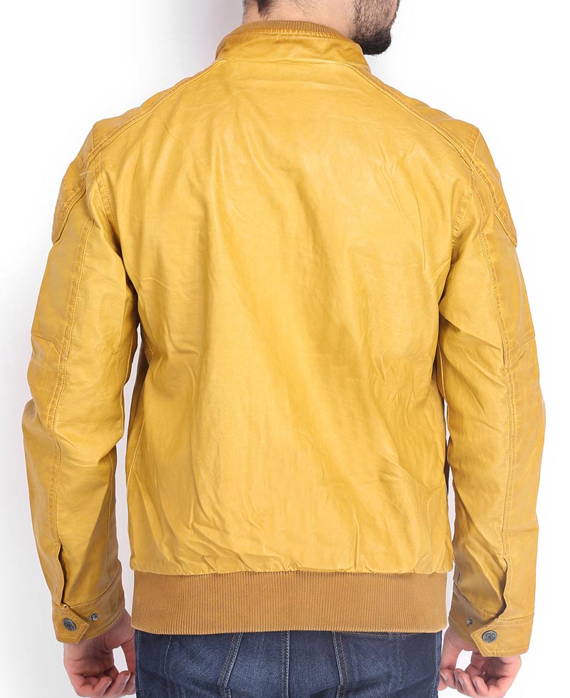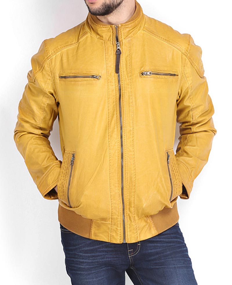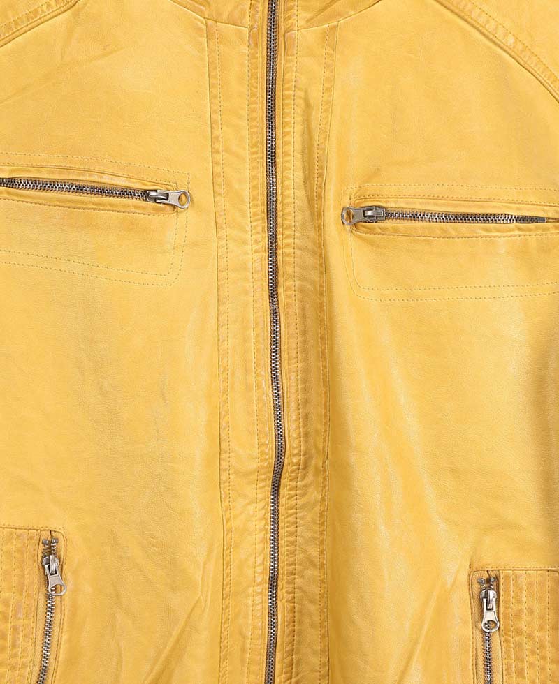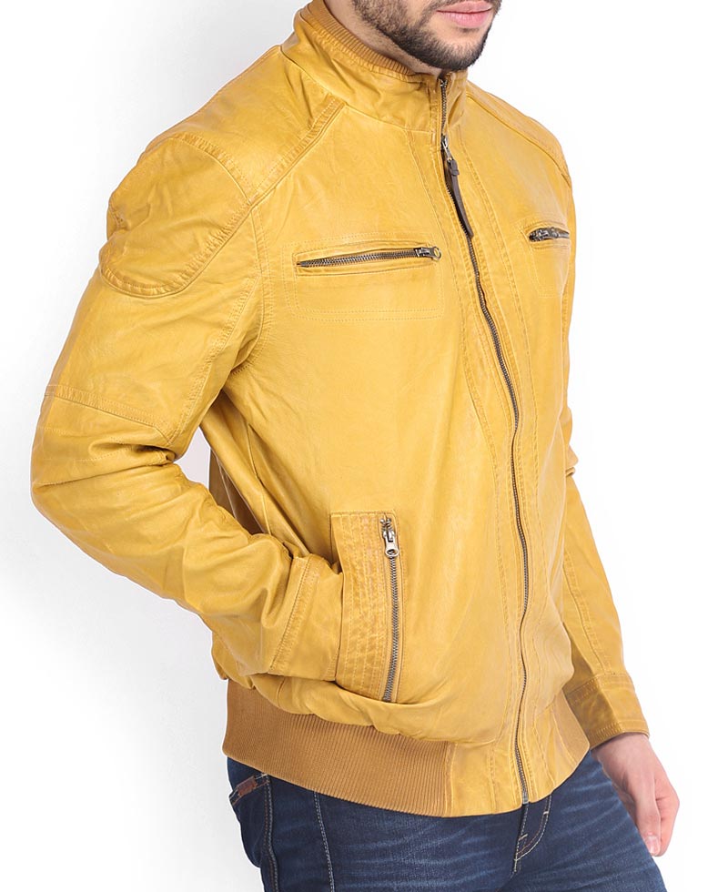 Experimenting with color to match the different styles of different people has been a part of fashion for many years. Introducing newer and more vibrant color to help men stand out at different event is the key. Yellow bomber jacket fit into the category of new modern fashion for men. The jacket is available in both genuine and faux leather and in eye catching mustard yellow color. Mustard yellow leather jacket has front zipper closure and a stand up collar for classic touch. Mustard yellow leather jacket has zipper pockets on both side of chest and insert pockets with zipper detailing on both side of waist which makes it one of a kind piece and differentiate from others. Yellow bomber jacket has full length sleeves with snap tab cuffs and a rib knit hemline to adapt to the body of wearer and enhance the posture.