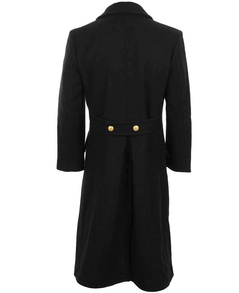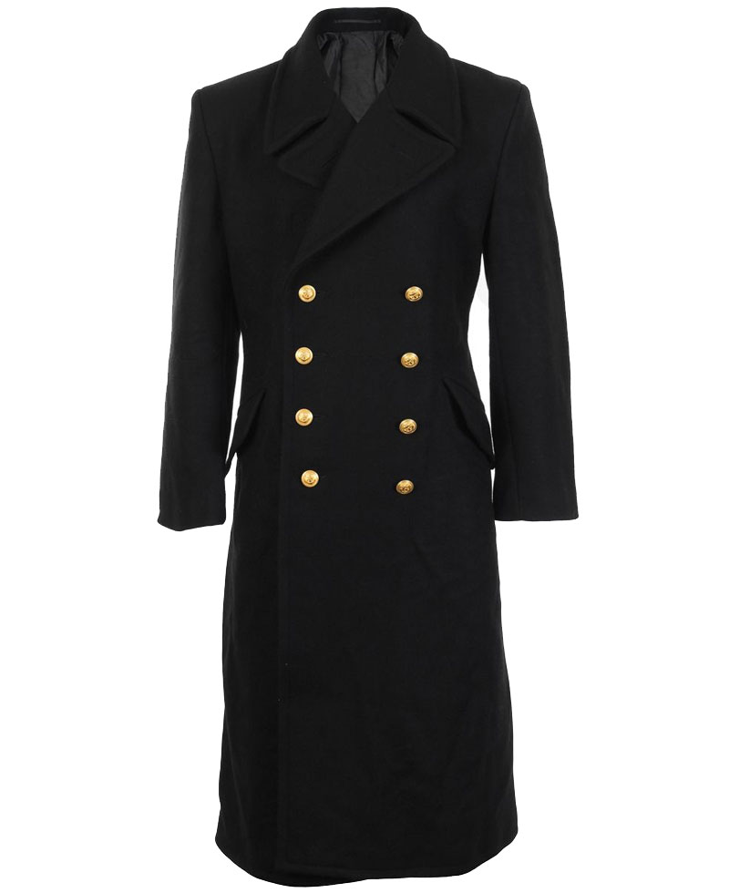 The stunning and stylish Military greycoat is fabricated with rich and premium quality wool material. The internal area of this classy coat is stitched with smooth and soft viscose that keeps you warm and comfortable all the time. The black color of this coat makes it more classic. Black Military Greatcoat has double-breasted style buttons on its front side for the closure. The coat has a notch lapel style collar that makes it more stylish to wear. Navy great black coat has open hem style cuffs on full length style sleeves. The coat also has two front waist flap pockets where you can secure stuff. The whole appearance of this coat makes it desirable to wear.