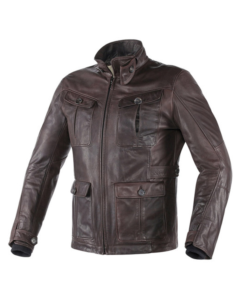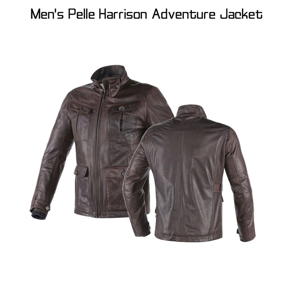 The stylish Harrison jacket comes in an attractive brown color. The exterior of this motorcycle jacket is manufactured with rich and premium quality genuine leather material. On the internal side of this Leather adventure jacket is a lining of smooth and soft viscose that keeps you warm and comfortable all the time. On the front side of this Harrison jacket is a ykk branded zipper attached that looks perfect for the closure. The jacket has a stand-up style collar with snap tab fastening. The leather adventure jacket comes with buttoned style cuffs on full-length style sleeves. There are two buttoned flap chest pockets along with two buttoned flap side waist pockets on this motorcycle jacket. The jacket is the perfect apparel for the winter season.