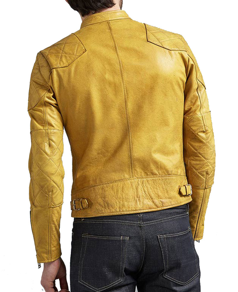 Men’s Biker / Cafe Racer Yellow Leather Jacket
