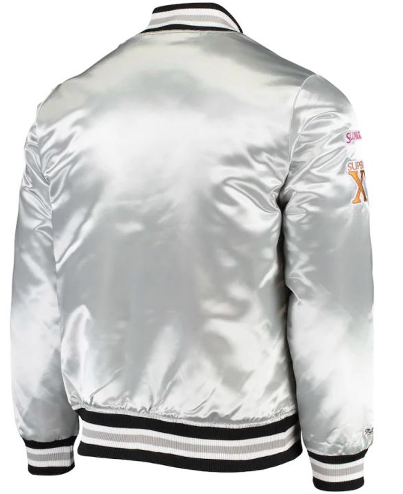 The stylish Raiders silver jacket is fabricated with rich and premium quality satin fabric. The internal side of this jacket is stitched with smooth and soft viscose lining that keeps you warm and comfortable all the time. The jacket has a mesmerizing silver color that looks very appealing and desirable. Raiders silver jacket has buttons attached to its front side for the closure. The jacket comes with rib knitted style cuffs on full-length style sleeves. It has two front waist pockets where you can secure stuff. The Raiders silver jacket has rib knitted style cuffs on full-length style sleeves. The jacket has an attractive erect style collar. There is a Raiders logo on the chest. The jacket also has a rib knitted hemline which gives it a fitted look.