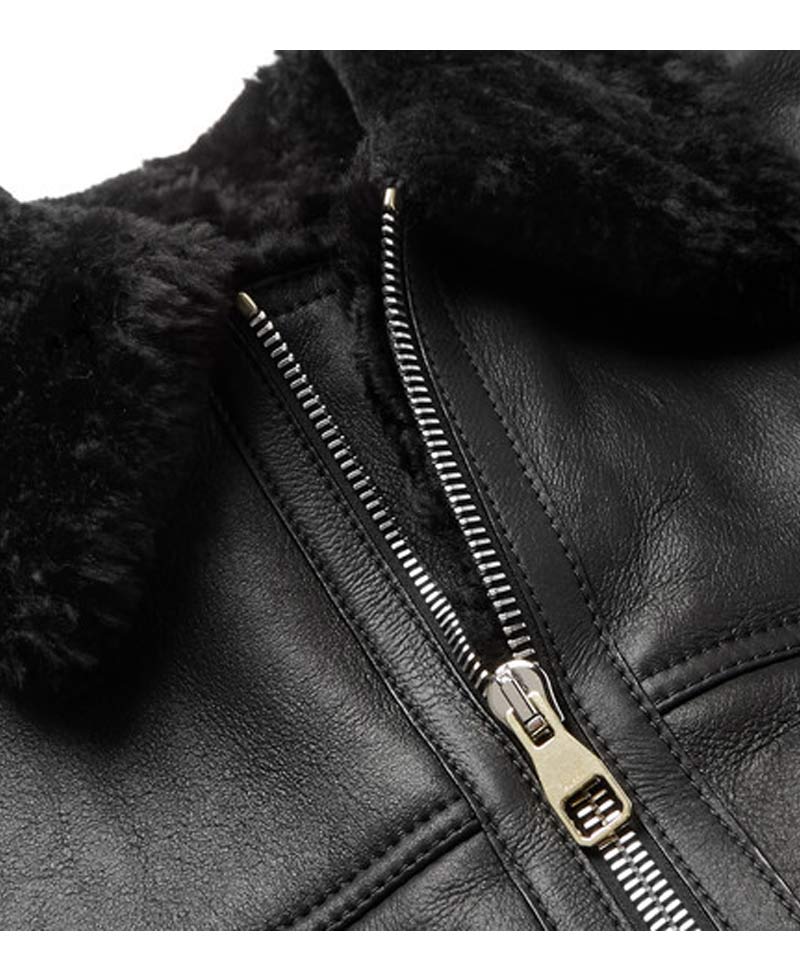 shearling bomber jacket is fabricated from high and durable quality of genuine leather material. This jacket has material quality that lasts long. This jacket will guard you against cold weather and will make you feel warm and cozy. This jacket is very comfortable that you can wear it all day long because it contains inner soft shearling lining. mens black leather shearling jacket has front ykk branded zipper style closure that fits in perfectly with the style of this jacket. This jacket has full length sleeves with shearling on the cuffs. There are front slash pockets to secure stuff in them. This jacket has a shearling shirt style collar. You can get this jacket in black color. You will love the detailing of this leather jacket. Follow the details and order this jacket. We assure you that you will not regret once after buying this jacket.