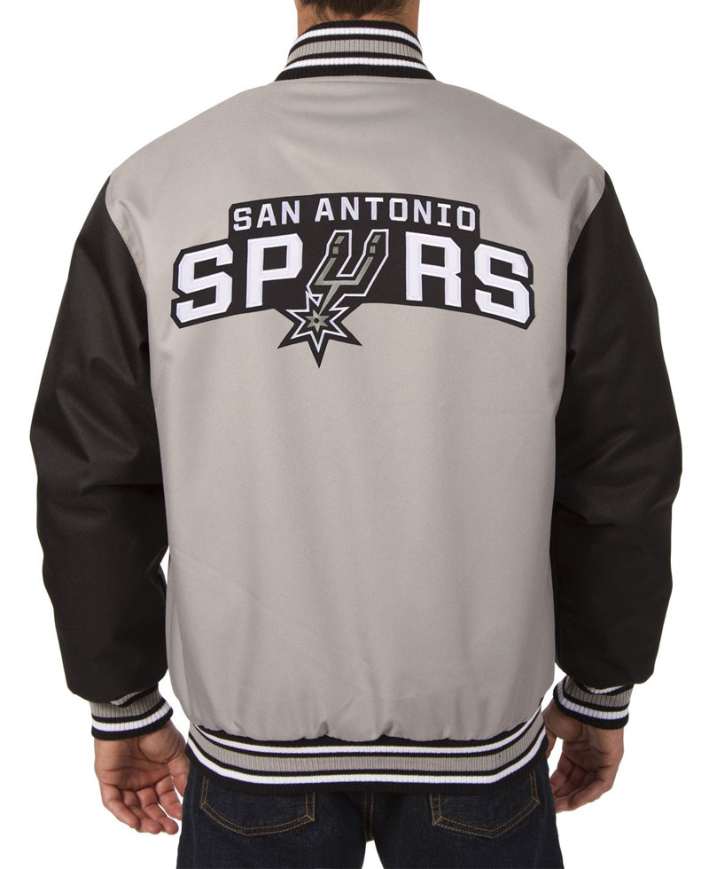 The classy and attractive spurs varsity jacket has an appealing black and grey color. The outer side of this jacket is fabricated with premium and rich quality polyester fabric. On the internal side of this jacket is a lining of smooth and soft viscose lining that guards you against cold and keeps you warm and comfortable. There are buttons attached to the front side of this spurs varsity jacket for the closure. The jacket has a rib-knitted style collar as well. The San Antonio Spurs varsity jacket has a rib-knitted style hemline that gives the apparel a fitted look. The jacket comes with two front waist pockets where you can secure stuff. There are rib knitted style cuffs on full-length style sleeves. This bomber varsity jacket is perfect for parties and outings.