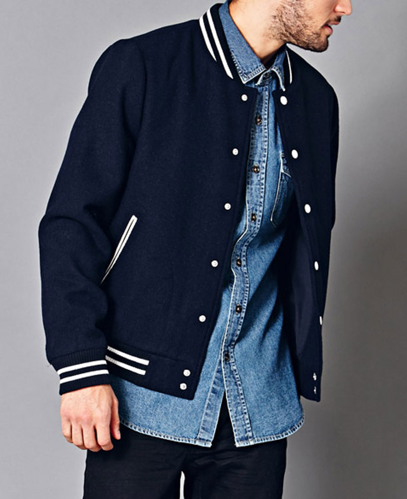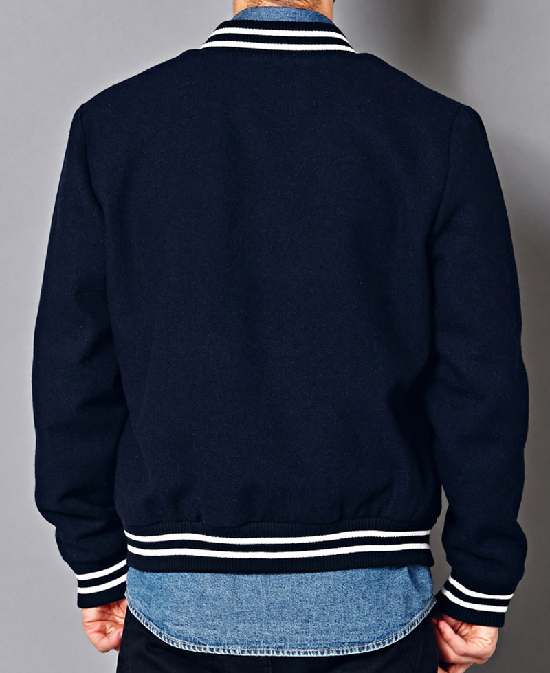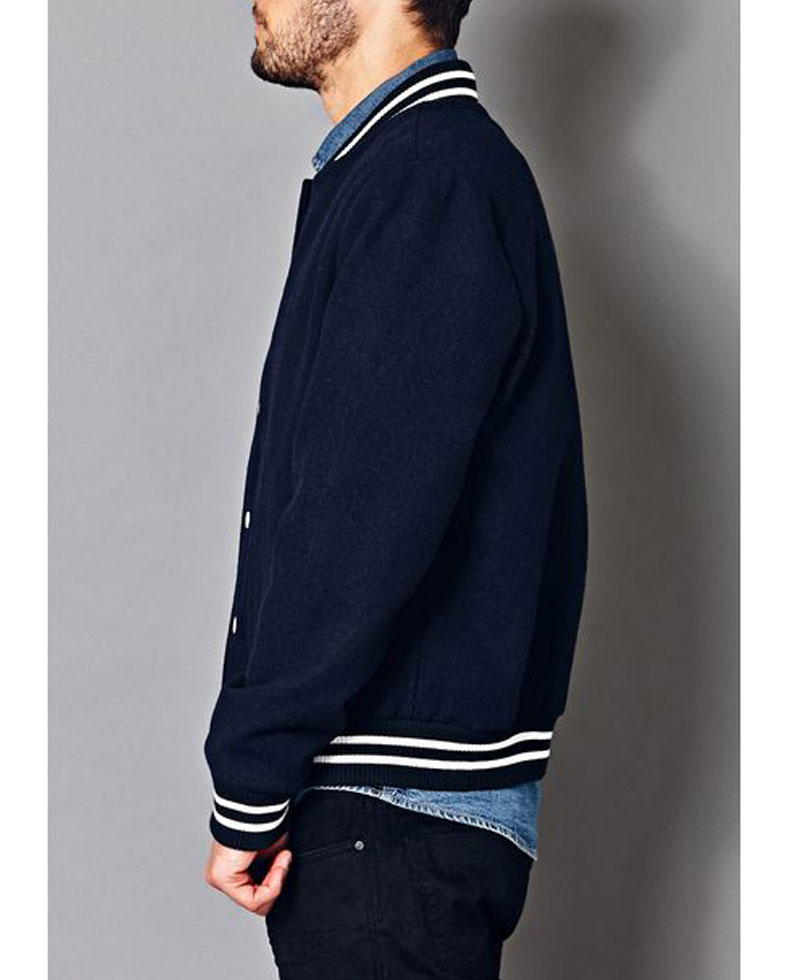 The extremely appealing and stylish bomber jacket is all set to make your winters more trendy. The internal side of this Men’s Navy varsity jacket is stitched with smooth and soft viscose lining that keeps you warm and comfortable all the time. The jacket is fabricated with the top quality of fleece fabric. There are buttons on the front side of this prep school varsity jacket for the closure. The jacket comes with a rib knitted style collar. The Men’s navy varsity jacket has a rib-knitted hemline that makes the jacket more fitted to wear. The jacket has full-length style sleeves on rib knitted style cuffs. The Prep school varsity jacket has two front waist pockets where you can secure stuff. This jacket is perfect for parties and outings.