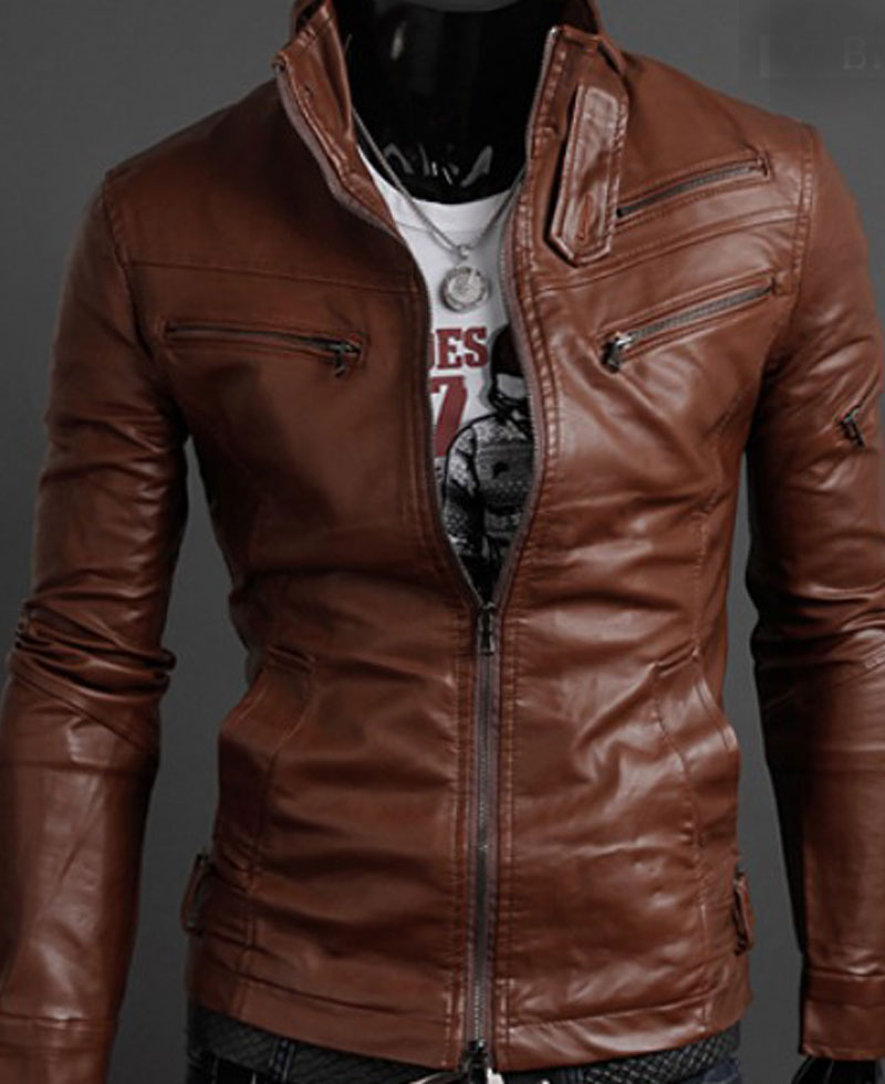 It is fact that different people have different likes. But Brown Faux Leather Jacket is the attire that is preferred choice of everyone. Do you know why? Because it has multiple features which form your persona fetching. Main facet of this garb is the presence of multiple zipper pockets that has given stylish appearance. You will get special attention of the people who are around you. Two zipper pockets are given at left side of the Men’s Slim Fit Brown Leather Jacket whereas one zipper pocket is present at right chest. The collar is in stand up form and belted strap is added in it. The front shutting is connected with high quality YKK zip. The color is winsome brown and forms your magical appearance. Two side waist pockets are also added. Two side waist buckle straps are given to create you slimmer. You will enjoy long and fitted sleeves in Multi Zipper Jacket that have open hem cuffs. Wear it and enter into the hearts of the people.
