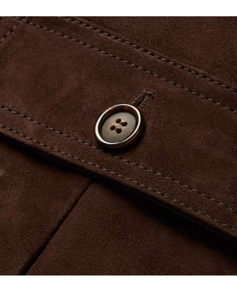 brown suede bomber jacket is manufactured from high and durable quality suede leather material. This jacket will shield you against cold weather and will make you feel warm. This jacket will give you an eye catching and trendy look. The inner soft lining makes this apparel very comfortable to wear. mens brown shearling jacket has full length sleeves with rib trimmed style cuffs. This jacket has front button style closure that fits in perfectly with the style of this jacket. This jacket has full length sleeves on button style cuffs. The front flap button pockets of this jacket are designed in order to secure stuff in them. The inner pockets are also very handy. This jacket is now available here in an appealing brown color. Order this jacket by just following the given steps. Hurry up and do not waste any further time.