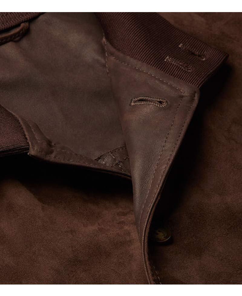 Men’s Brown Suede Leather Bomber Slim Fit Jacket