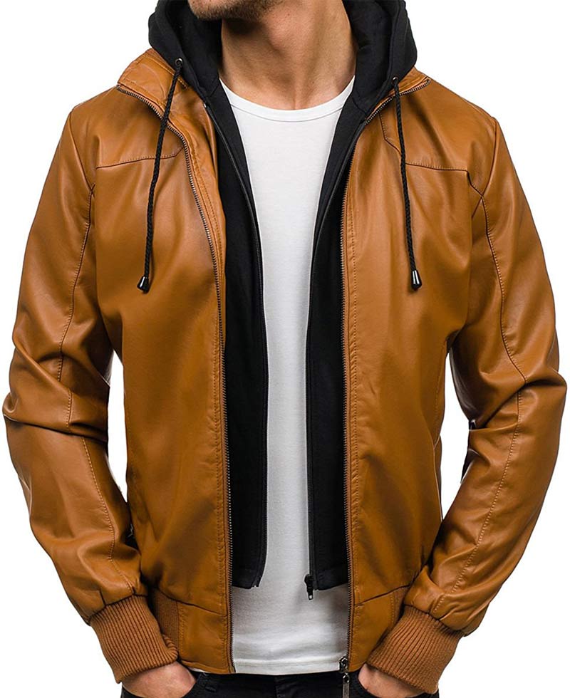 Faux Leather and Inner Polyester Lining has been used in the manufacturing of Slim Fit Brown Leather Jacket, so you don’t need to struggle with creases anymore. Its Stand Collar along with Removable Hoodie will not provide protection from the wind but will also make you look stylish. Furthermore, Long Sleeves featuring Rib Knit Cuffs will give a phenomenal and mature appearance. Its attractive stitch detail design plays a key role in increasing the elegance of your personality. Its multiple pockets are spacious and secure enough for your personal belongings. In other words, Camel Brown Leather Jacket has all the attributes which will make you fall in love with it.