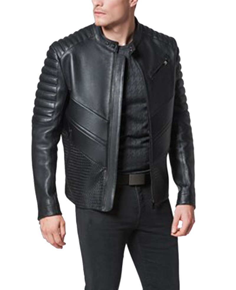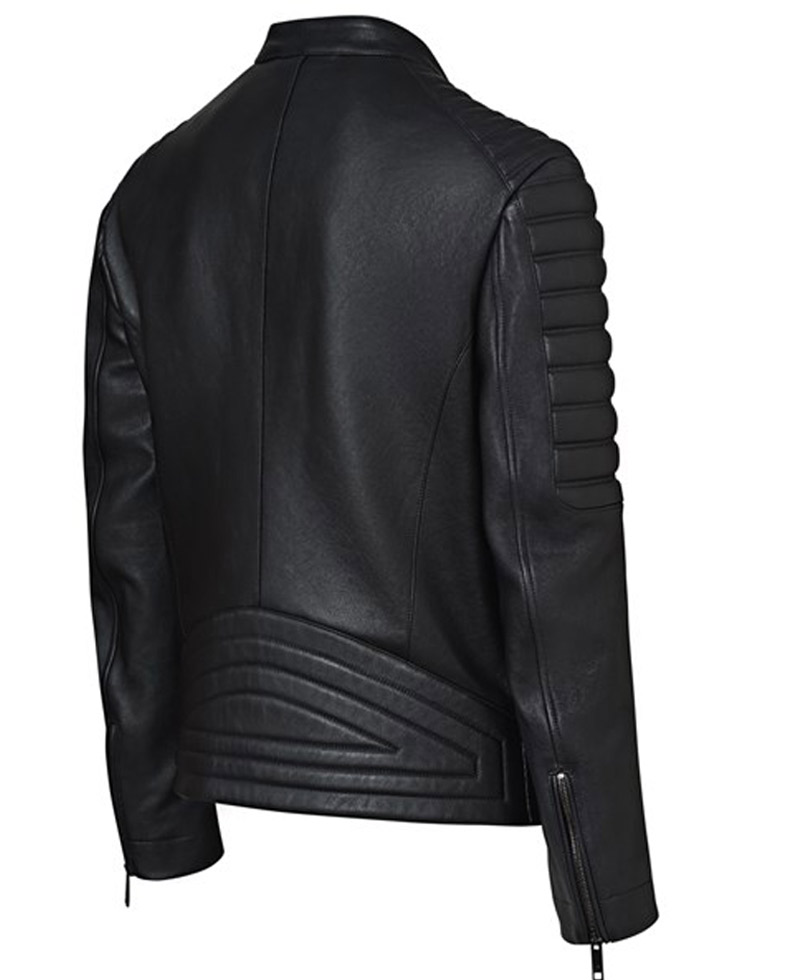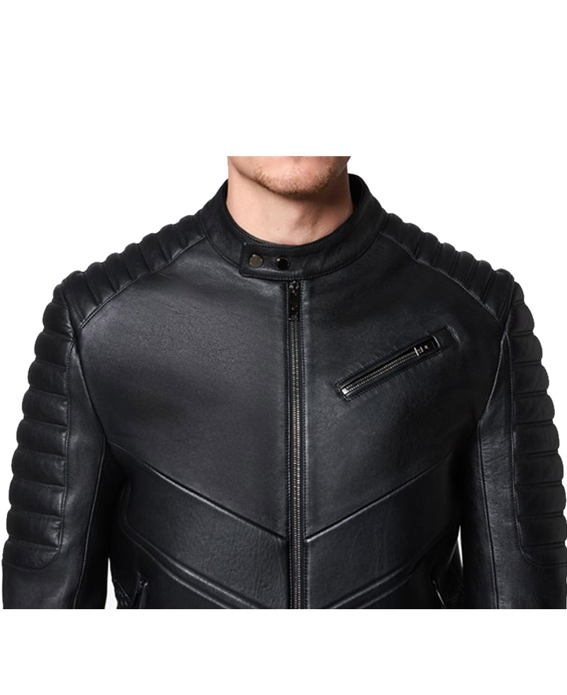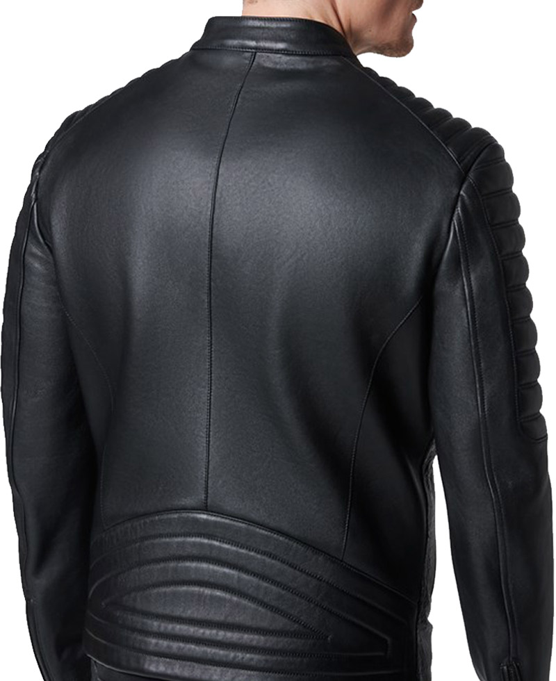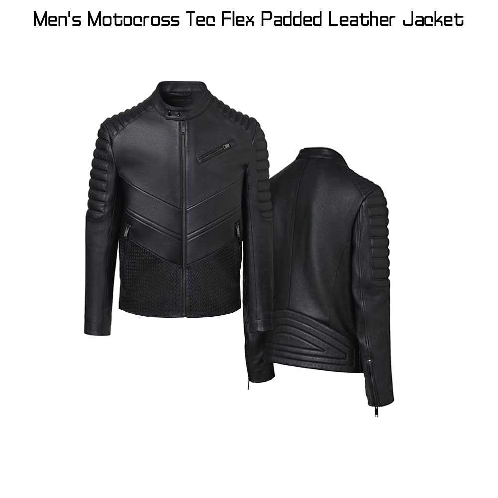 Men’s Padded Tec Flex Biker Black Leather Jacket