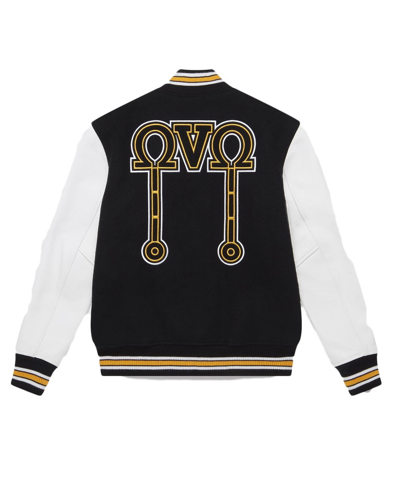Omega varsity jacket comes in black color. The external side of this variety jacket is fabricated by using top quality wool fabric. Top quality genuine leather material was used in the process as well to manufacture long length sleeves. The jacket has an. The internal lining of smooth and soft viscose attached that guards you against cold weather and keeps you warm and comfortable. The jacket has buttons attached to the front side for the closure. October’s very own Omega varsity jacket has an owl patch on its chest. The jacket has an erect style collar. It comes with two front waist pockets where you can secure stuff. The rib knitted hemline gives the jacket a fitted look. The jacket has rib knitted style cuffs on full length style sleeves.