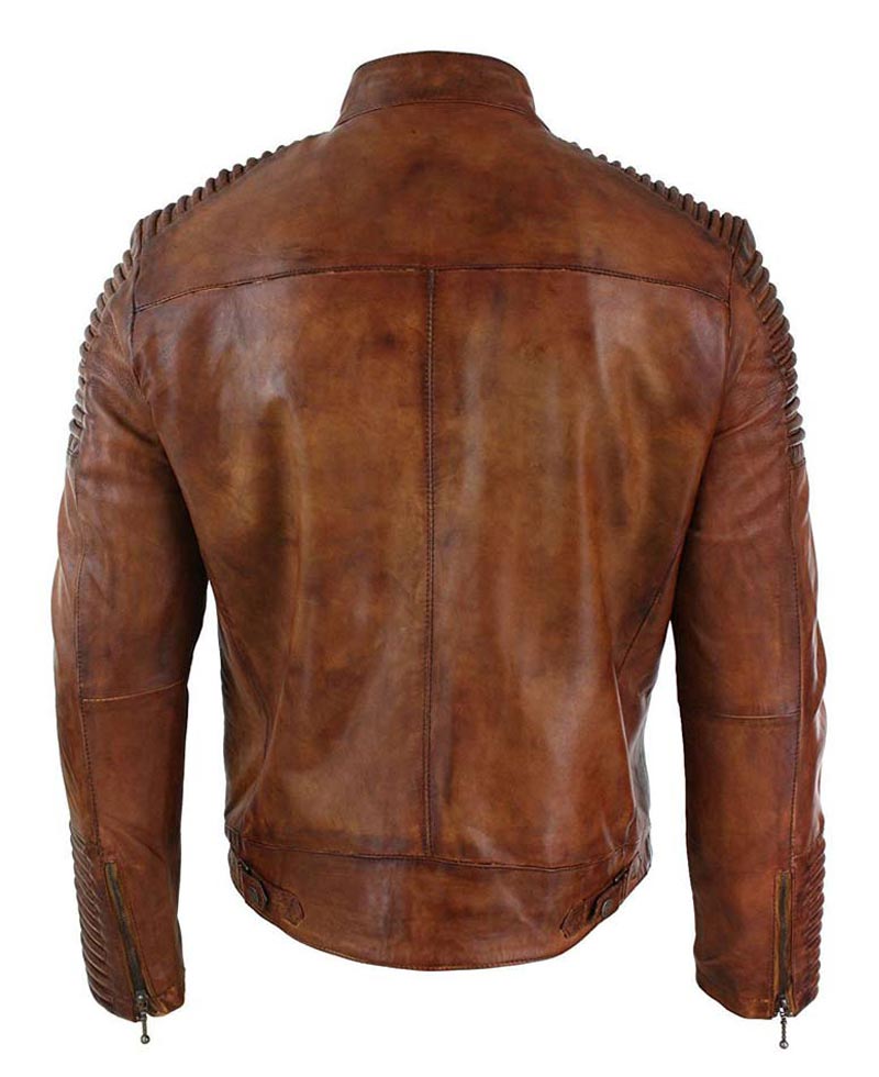 Men’s Vintage Cafe Racer Distressed Brown Leather Motorcycle Jacket