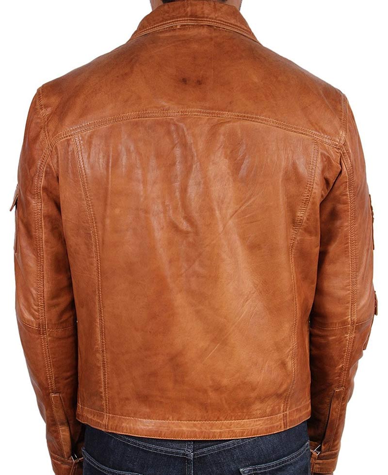 Men’s Shirt Collar Style Vintage Tan Brown Leather Jacket