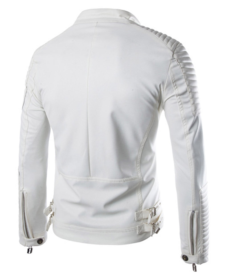 White leather motorcycle jacket has sensational apparel when worn up during riding a motorcycle. The Washington jacket is available in genuine leather material with internal lining of viscose material for cozy feels. The posh and grace is added to the white leather biker jacket by the aid of stand up collar and a slant flapped padded pocket with a zipper pocket on same side which enhances the durability and style of it. The imploring design of white leather motorcycle with white color, padded detailing on each shoulder and sleeves with zipper cuffs, front YKK zipper closure with buttons buckle at lower end from backside fetch the attention of you while searching a perfect blend of style and decency combination.