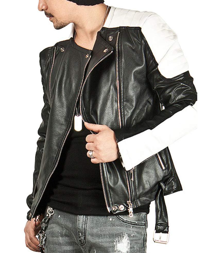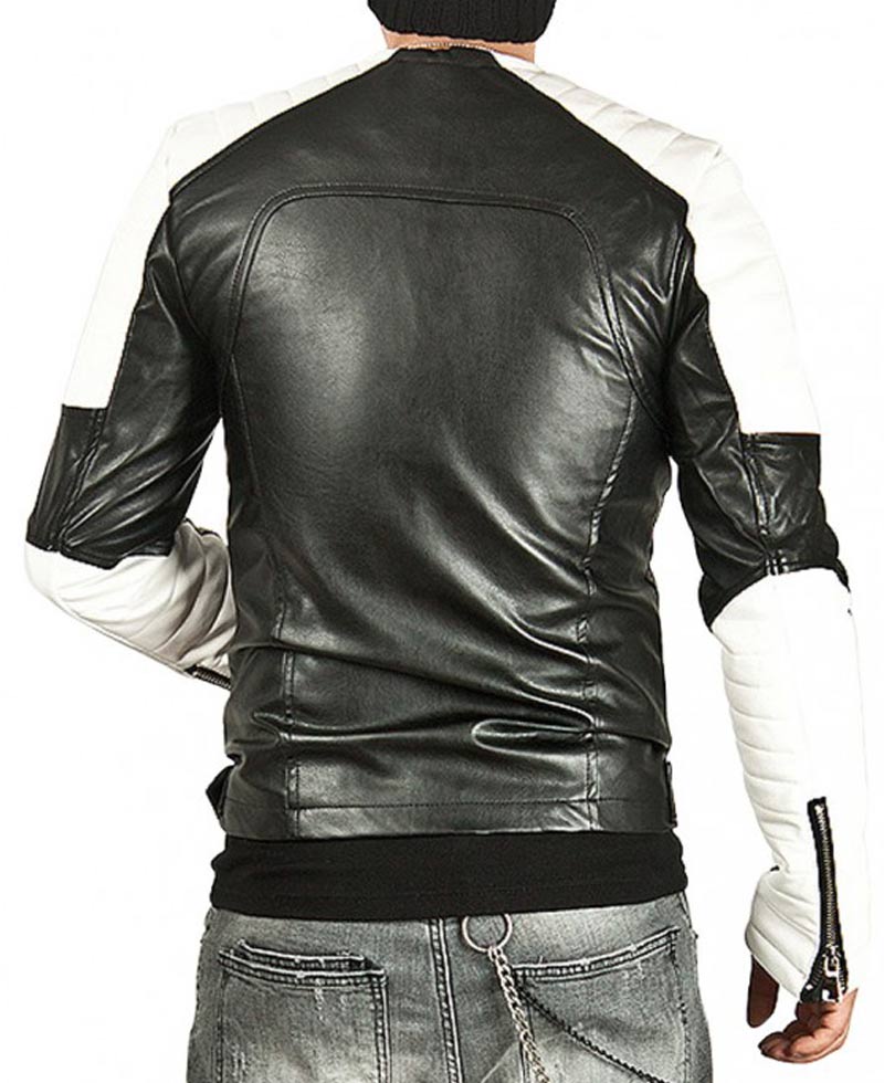 Ritzy Black Leather Moto Jacket will help you to stay cool. Buy it at once and make your persona mesmerizing. The outer shell is prepared from best genuine leather or faux leather. Inside of the outerwear you will relax by rayon lining. No collar is given that is looking unique. The forefront is added in asymmetrical shape that is the favorite style of motorcyclists. Black Leather Biker Jacket is the wonderful mishmash of black and white hue. The padded white sleeve along with black leather has given stunning impression. The upper front arms are in white padded form with quilted lining. Only two zipper pockets are added on side midriff. Belted buckle is present on front hemline. You will admired by your surrounding in the Black Leather Moto Jacket. Long and fitting sleeves have zipper cuffs.
