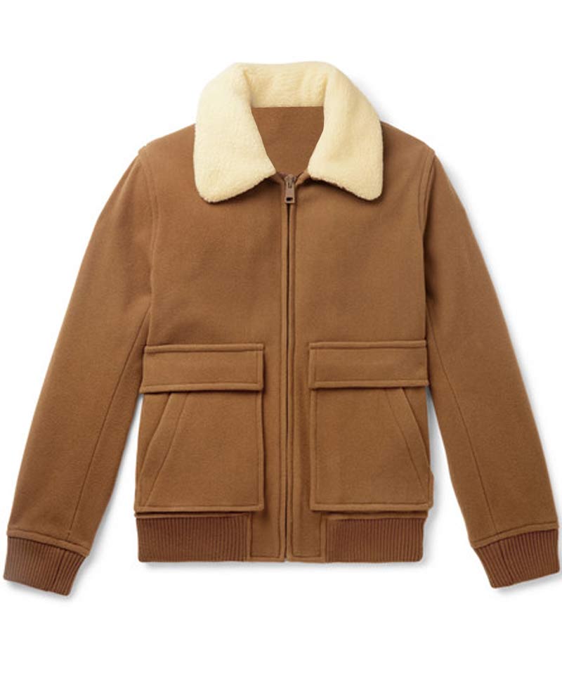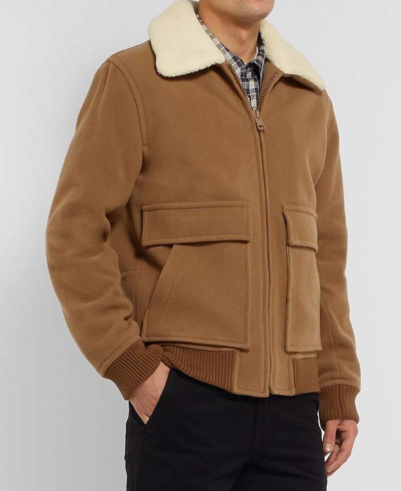 wool blend bomber jacket is manufactured from high and durable quality wool material. This jacket will shield you against cold weather and will make you feel warm. This jacket will give you an eye catching and trendy look. The inner soft shearling lining makes this apparel very comfortable to wear. You won’t feel any burden as this jacket is very comfortable that you can wear it all day long.brown wool bomber jacket has a shearling shirt style collar. This jacket has full length sleeves with rib knitted cuffs. The rib knitted waist hemline look very attractive on this jacket. There is front ykk branded zipper style closure that fits in perfectly with the style of this jacket. There are two front flap pockets as well. This jacket is now available here in an appealing brown color. Order this jacket by just following the given steps. Hurry up and do not waste any further time.