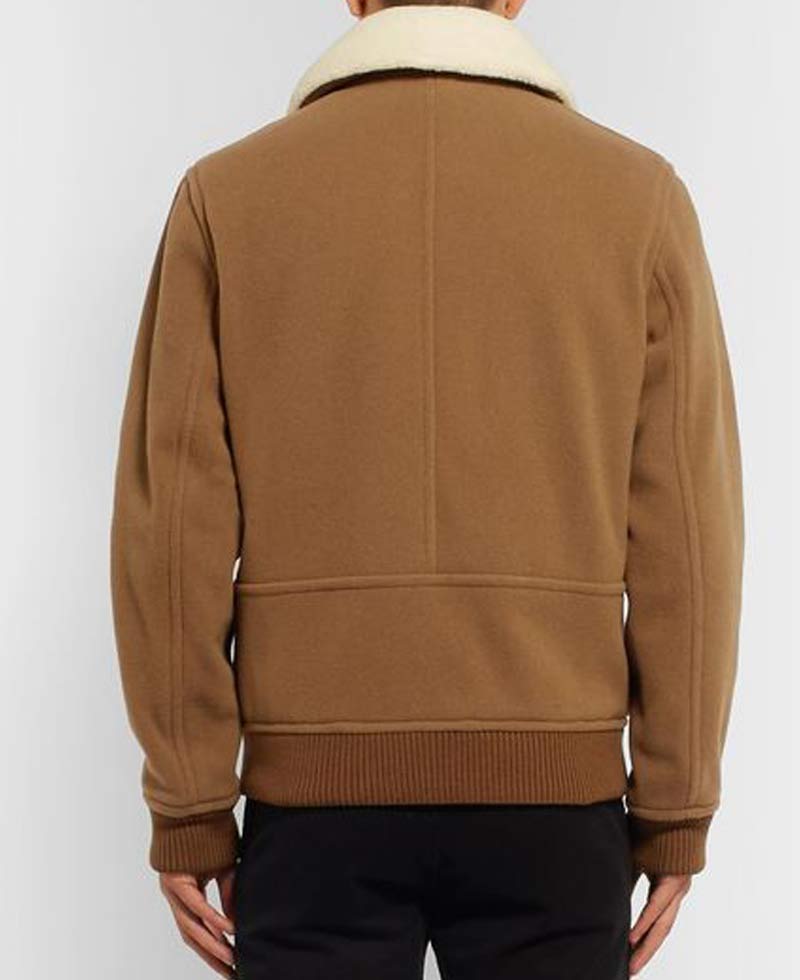 Men’s Winter Wear Brown Wool Blend Bomber Jacket with Faux Shearling Trimmed