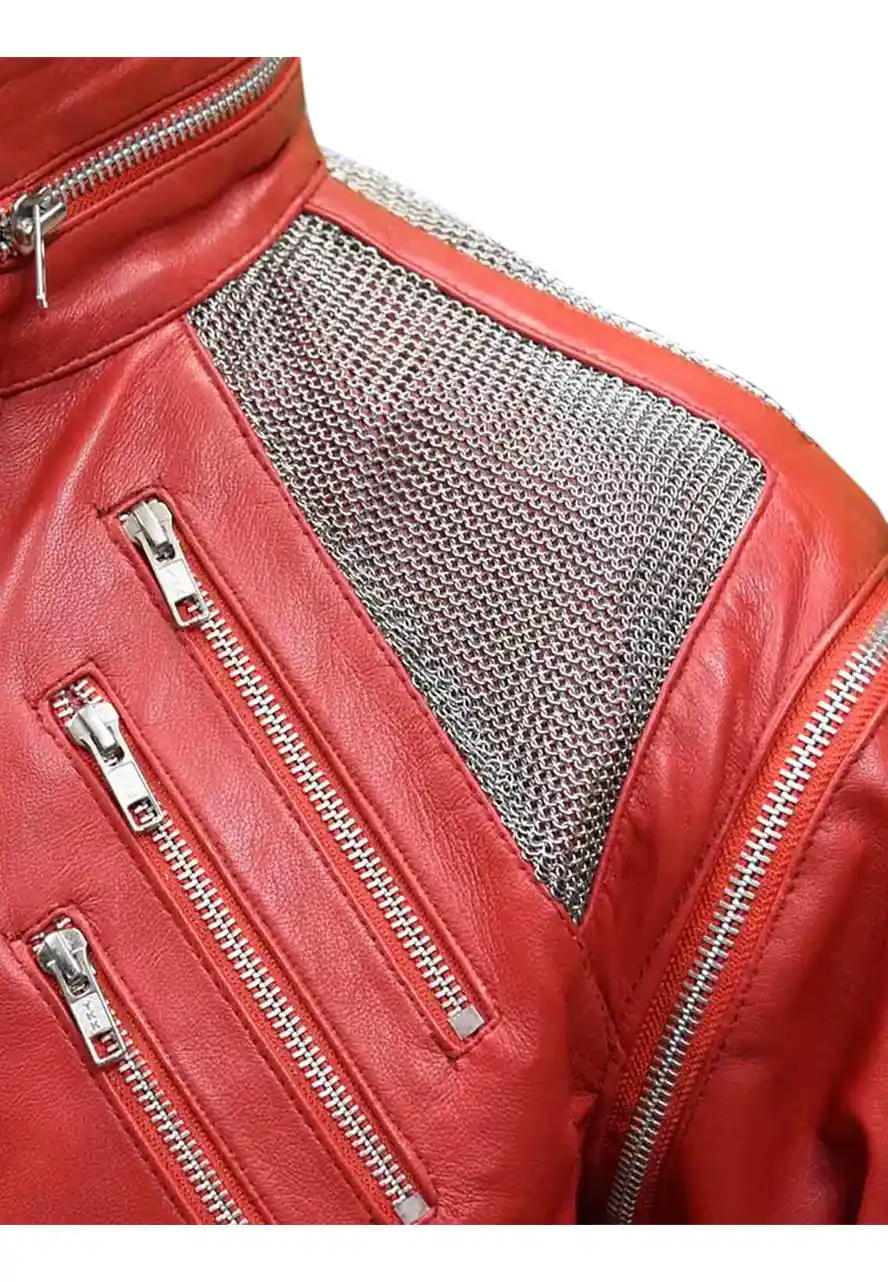 Beat It Michael Jackson Red Leather Silver Zipper Jacket