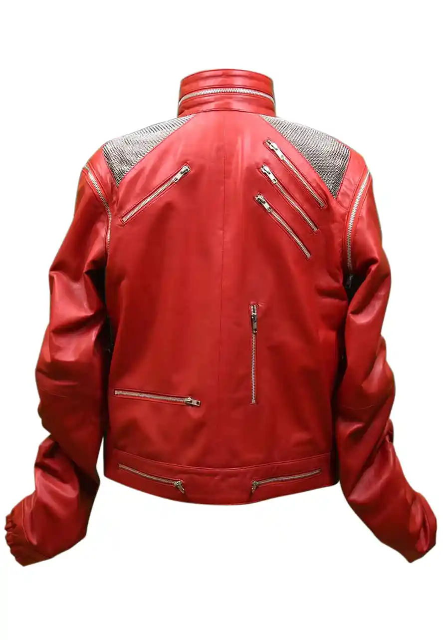 The Michael Jackson Beat It red leather jacket is a fabulous outerwear that was worn by the legendary singer Michael Jackson in his video. “Beat It” is the super duper hit song of Michael Jackson. It was included in the album “Thriller” and the Michael Jackson Beat It Jacket, too. The album was released in 1982, but it is still known as a classy album, especially the song Beat It. This jacket has given a new trend to the fashion industry. Since then, the Beat It Jacket has always been a part of the latest style. The real sheep skin is used for manufacturing. The hot red color is giving a very charming appearance. There are multiple zipper pockets on the Beat It Jacket that are quite unique. Three zipper pockets are present on the left shoulder, whereas two similar pockets are on the right shoulder. The stand-up collar looks nice. Two side zipper pockets are added to the Michael Jackson Red Jacket. The slim-fitting style is marvelous. The elastic cuffs form a slimmer look. The sleeves are detachable, and according to your choice, you can add or remove them from the Michael Jackson Zipper Jacket. The front silver zip closure is given in it.