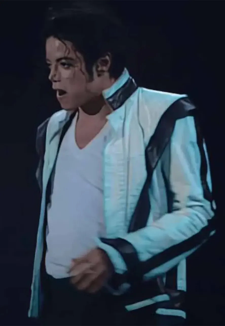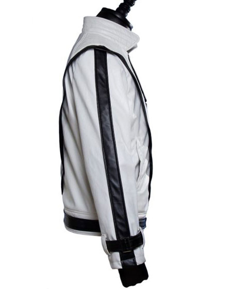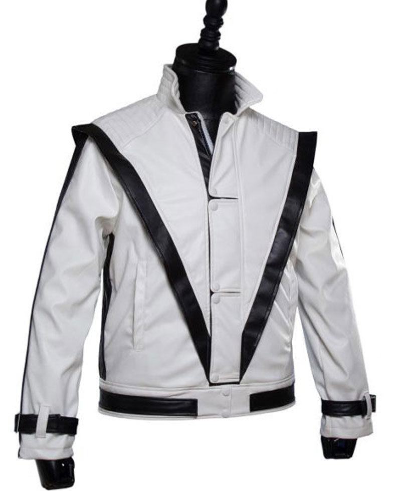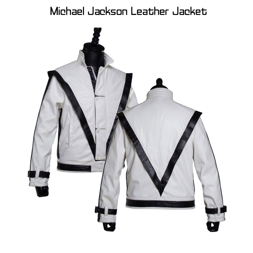 The stylish white thriller jacket comes with black stripes, which look attractive. The External Side of This Jacket is manufactured using rich and premium quality genuine leather material. The Jacket is Durable to Wear Because It Has Quality Stitching. The Inner Side of This Leather Jacket is Covered With Smooth and Soft Viscose Lining That Guards You Against Cold Weather and Keeps You Comfortable All the Time. The White Thriller Jacket Was Worn by the Late American Singer and Dancer Michael Jackson During His Performance. The Jacket Has Buttons Attached to Its Front Side for Closure. Michael Jackson Thriller White Leather Jacket Has a Stand-up Style Collar. The Jacket Has Rounded Cuffs With a Removable Belt on Full-length Style Sleeves. There Are Two Front Waist Pockets on This Jacket, Along With Two Internal Pockets Where You Can Secure Stuff.