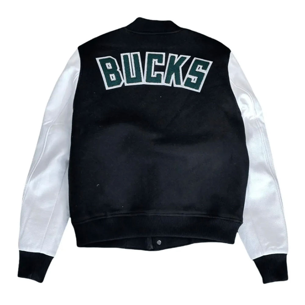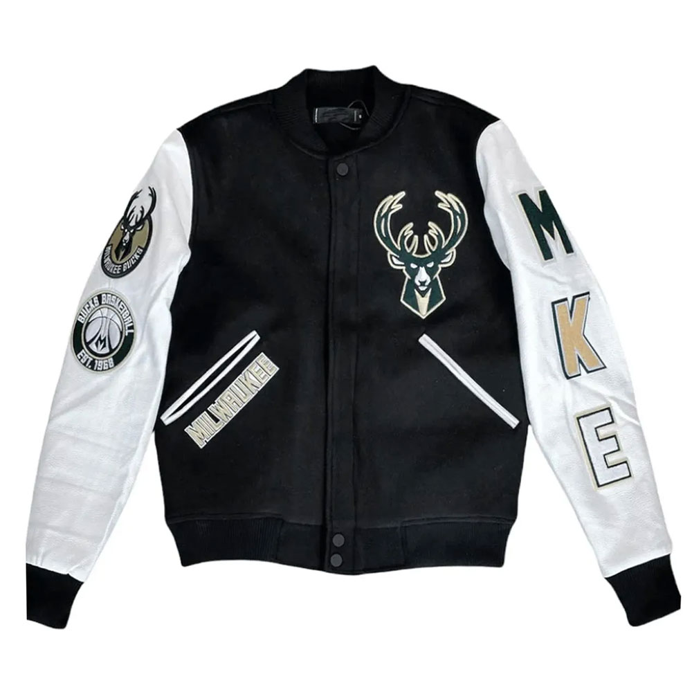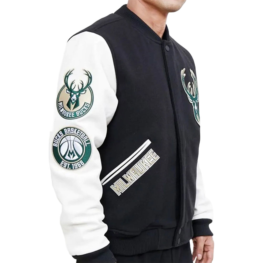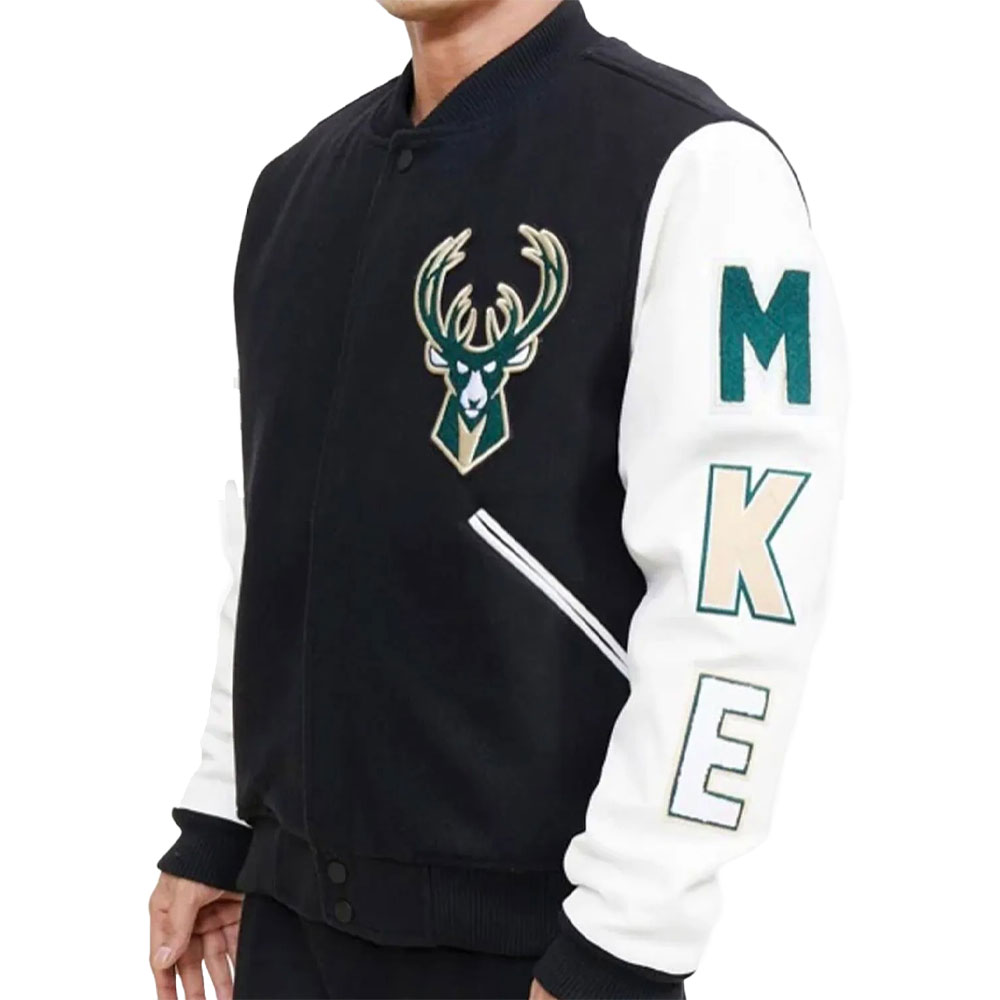 The Milwaukee Bucks Letterman Jacket Will Give Out an Aura of Sophistication and Build Your Personality Like Everyone Will Turn Their Head on You and Give You Memorable Compliments. Its High-quality Wool Fabrication Makes It Warm and Ageless Along With Its Soft Viscose Inner Will Comfy You as Long as You Wear It. The combination of Black and White Colors Will Give You an Attractive Look. The Milwaukee Bucks Black Letterman Jacket Has Been Tailored Modishly by Using All Smart Attributes Like a Rib-knitted Stand-up Collar, Smooth Zippered With Snap Tab Buttoned Closure, Rib-knitted Cuffs, and Hemline and Side Waist Pockets. The Milwaukee Bucks Black Jacket Will Create a Look That Will Be Uniquely Yours.