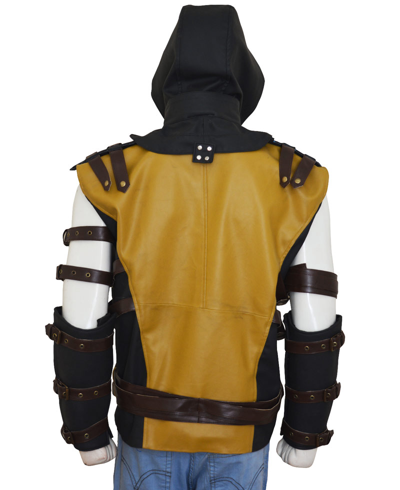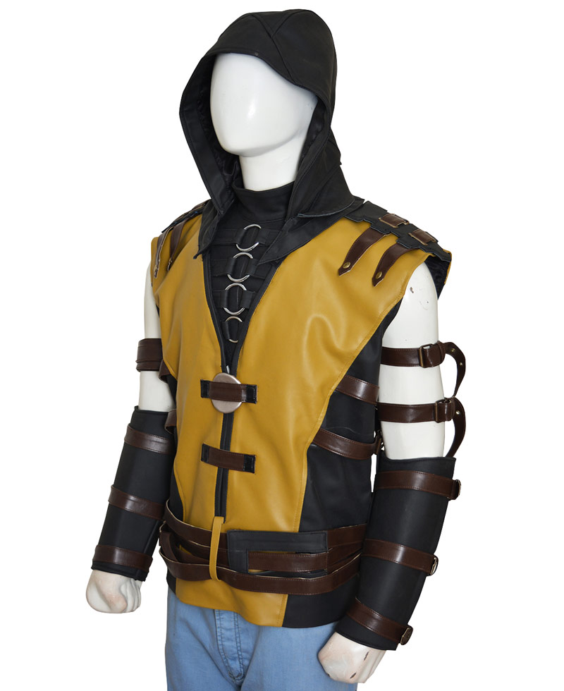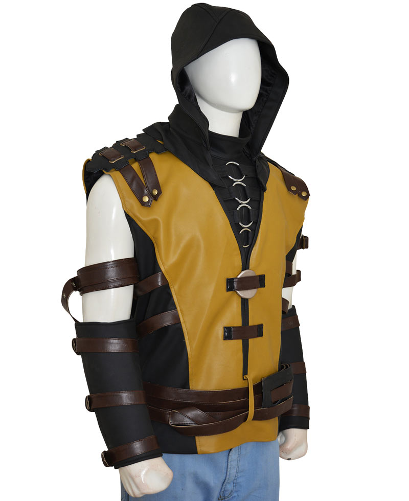 Mortal Kombat X Video Game Scorpion Leather Vest with Hoodie