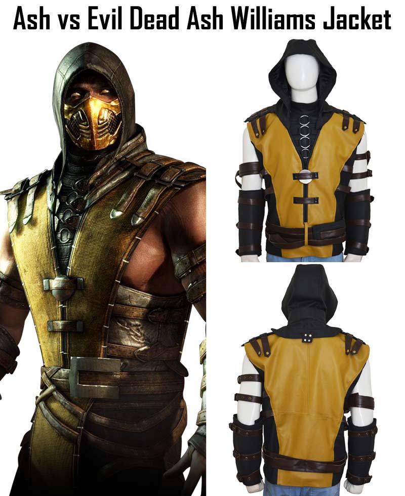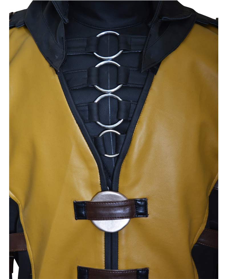 The character Hazo Hasashi who is now known as Scorpion has worn Mortal Kombat Scorpion Jacket and looked gorgeous. The outer shell of the apparel is made from top quality PU leather. It is first shown in famous video game named as “Mortal Kombat X”. After the release of game the fashion lovers tried to get the same vest which is worn by the leading character of the video game. The soft rayon lining has given inside of the leather. Scorpion Mortal Kombat Vest is the best combination of black and yellow shade. The snap tab collar is given in it. No front pocket is present but two inner pockets are added. For frontal shutting straps are provided in buckle form. The hoodie is attached with collar and is a unique feature that you will not found in usual vest. The buttoned buckle is given on both shoulders. Because of fabulous style it is the current fashion. Get Scorpion Mortal Kombat X Vest and wear.