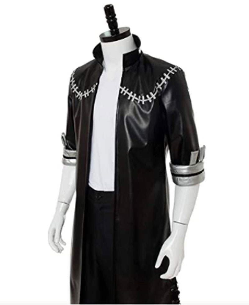The stylish long-length style coat is inspired by a popular Japanese Manga series called My Hero Academia where the fictional series character called Dabi was seen wearing this coat. The external side of this coat is manufactured with top-quality faux leather material. On the inner side of this stylish Dabi trench coat, there is a lining of smooth and soft viscose attached that guards you against cold weather and keeps you comfortable. The appealing black color of this coat makes it more desirable to wear. My Hero Academia Dabi Coat has an open style front look. The lace knotted pattern on each bottom side of this trench coat looks quite attractive. The My Hero Academia Dabi coat has quarter-length sleeves on open hem style cuffs. The coat has a stand-up style collar.