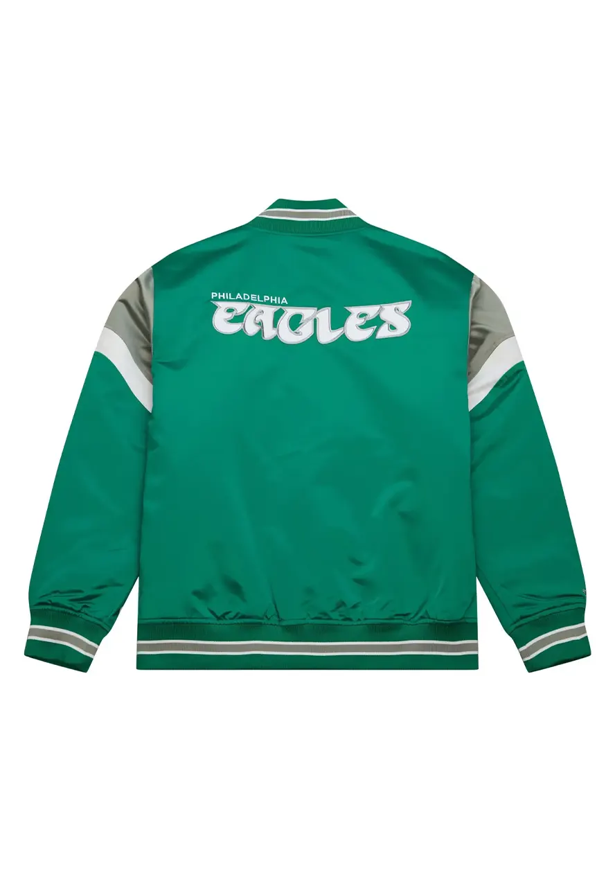 The N Philadelphia Eagles Satin Jacket is Highly Fashioned in Design but Charming in Nature, This Jacket Will Wrap You With Elegance and Give You Trendsetting Fashion to Own Distinctive Personality in a Big Crowd. The Premium-quality Satin Fabrication Makes It Lightweight and Wearable in All Seasons, While Its Soft Viscose Inner Makes It Comfortable and Moisture-Free. The Charming Green Color Will Look Fantastic on You. The Philadelphia Eagles Varsity Jacket Has Been Designed by Using All Smart Features Like a Rib-knitted Collar, Snap Tab Buttoned Closure, Rib-knitted Cuffs, and Hemline and Side Waist Pockets to Increase Its Functionality. The Eagles Satin Jacket Will Be Your Versatile Companion That Effortlessly Give You an Iconic Look.