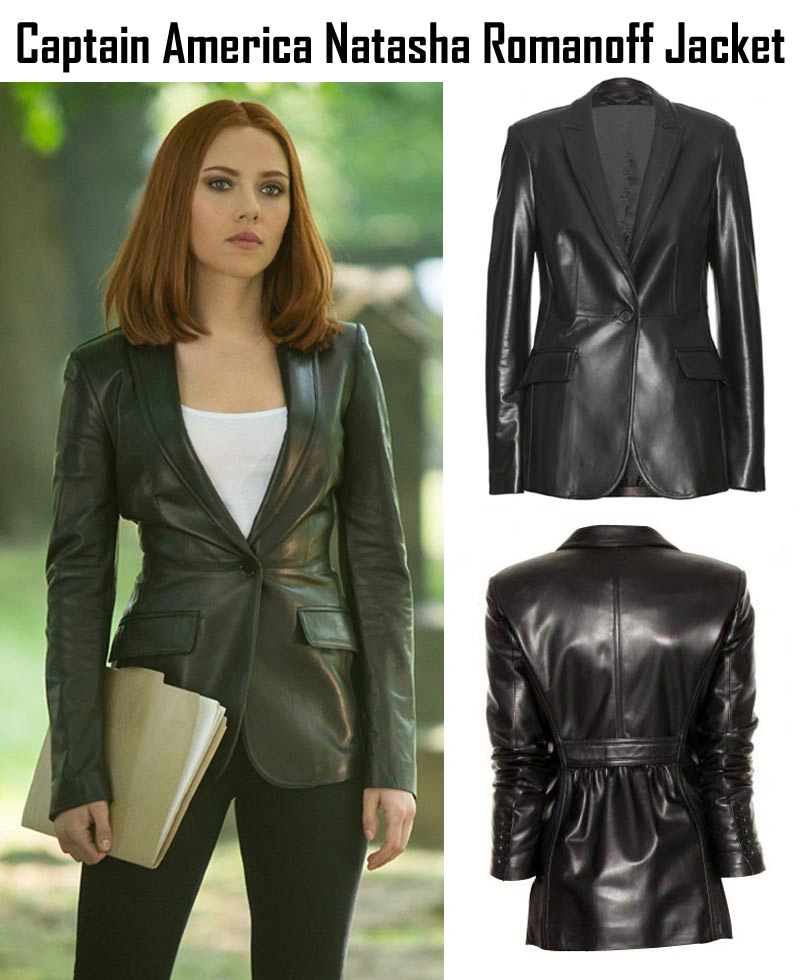 Some actresses always look very charming because of sensational dress like Natasha Romanoff Blazer. If you will choose such enthralling outfit believe you will also look fabulous. The best example is of Scarlett Johnson who wore same dress in the famous movie named as “Captain American: Winter Soldier”. She portrayed the role of black widow named as Natasha Romanoff and performed well. Supreme quality genuine leather or faux leather is selected for the manufacturing of Captain America The Winter Soldier Scarlett Johnsson Blazer. The coat style will make you vigorous among a crowd of people. Durable rayon inside layer has increased the value. It is prepared in coat style that looks stunning. Energetic black color gives you energy during wearing. Lapel neckline is very endearing. The frontal shutting is related with only one button. On the back of Natasha Romanoff Leather Blazer, you will found belt strap which has formed unique and gripping impression. The sleeves are long and slim. Two flapped pockets are added on front side. Buttoned cuffs are very simple in wearing.