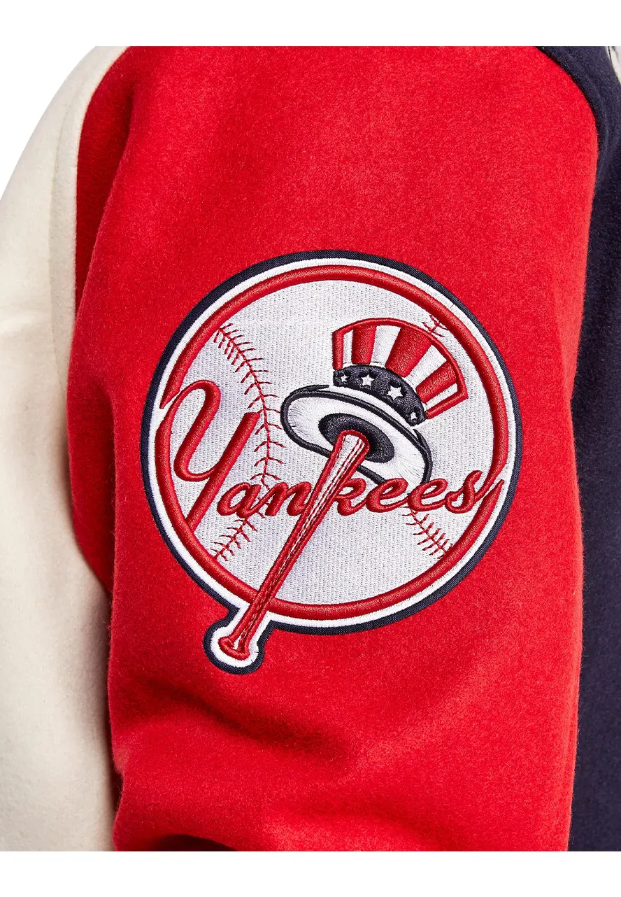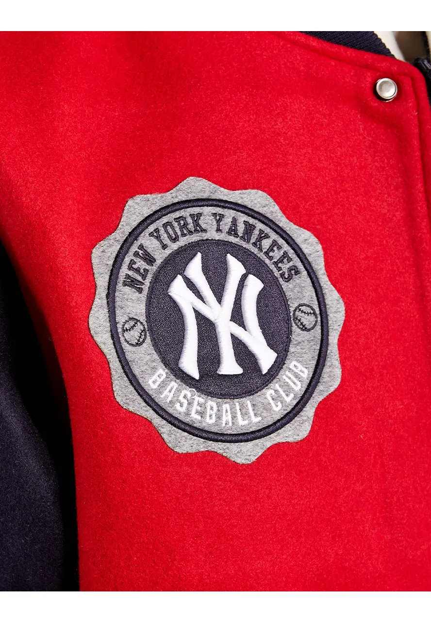 The New York Yankees Varsity Jacket is More Than Just an Outer Layer, It Has Been Designed With Craftiness to Show Your Dedication Towards Sports While Keeping You Fashion-forward. The Dapper Jacket Has Been Fabricated by Premium-quality Wool to Make It Warm and Ageless, While Its Soft Viscose Inner Makes It Comfortable and Sweat-free. The Combination of White, Black and Red Colors Will Look Stunning on You. The Yankees Red Varsity Jacket Has Been Designed All Smart Features Like a Rib-knitted Stand-up Collar, Snap Tab Buttoned Closure, Rib-knitted Cuffs and Hemline, and Side Waist Pockets to Keep Your Small Accessories. The Yankees Varsity Jacket Has a Perfect Combo of Fashion and Functionality.