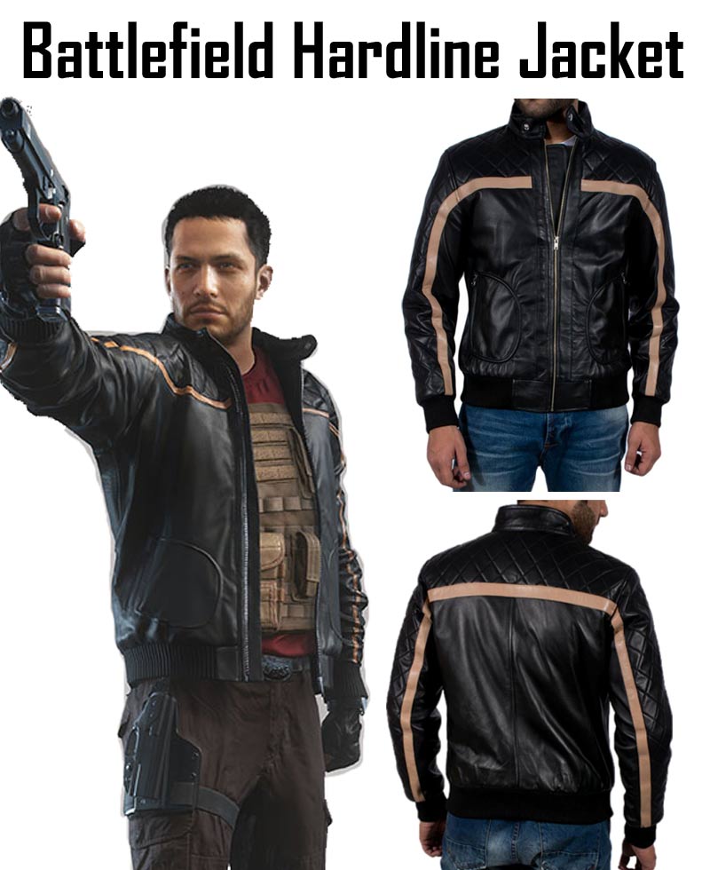 The video games are also the inspiration for fashion designers and they conceive ideas of dress like Battlefield Jacket. The Battlefield Hardline was a popular video game that has gained extraordinary fame among the gamers. The exterior part of the outerwear is made from the high class genuine leather. The black shade of Battlefield Jacket will make you unforgettable if you wear it in any special occasion. The snap tab collar style gives you sophisticated appearance and increases your confidence. The Battlefield Hardline Jacket has front zipper closure with branded YKK zip. You will enjoy the beautiful mishmash of black and brown shade. The brown stripes are present on chest and sleeves. The rib-knitted waist hemline of Battlefield Hardline Jacket forms slimmer look. The soft inner viscose lining is very durable. The cuffs are rib-knitted and it makes you endearing and outstanding.