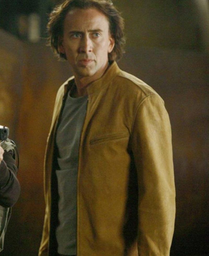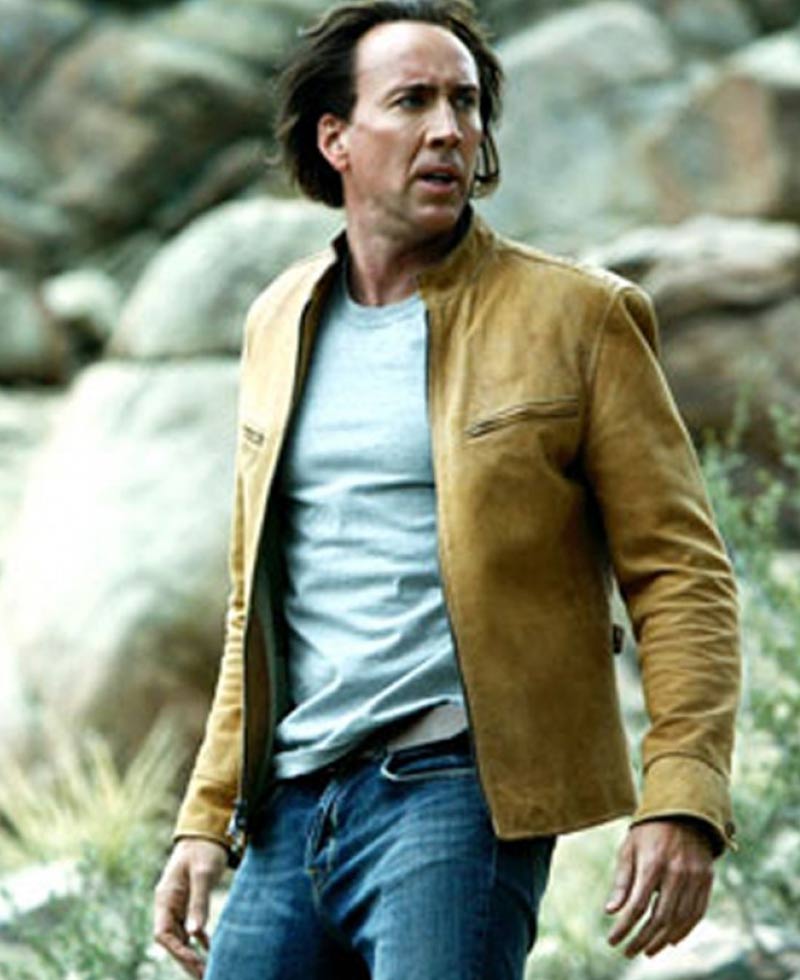 Who wishes to style their personality like Nicolas cage have a chance to grab stylish outfit it makes more appealing to your appearance. We are presenting Cris Johnson jacket worn by him in “next movie”. Crafted from real leather with viscose material lining. Available in beautiful yellow color. It has round neck collar with zip closing front gives stunning look. Two zipper pockets are place on chest. The sleeves are full in length with buttoned cuffs gives resplendent look. Next Nicolas cage jacket has two adjustable buckles on back for fitting. Stitching detail on back is the most highlighted aspect of the Cris Johnson leather jacket.
