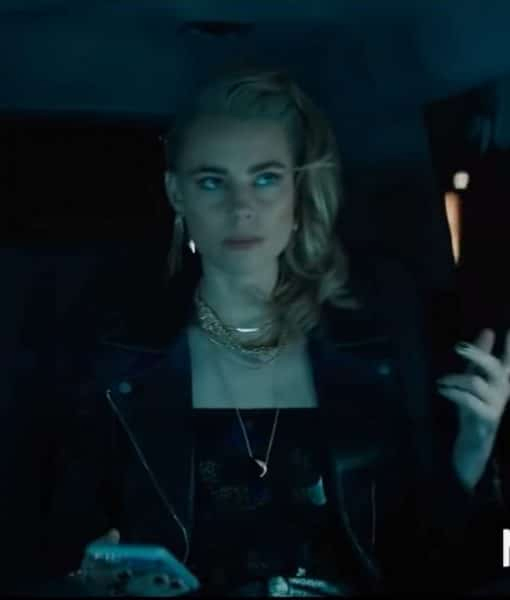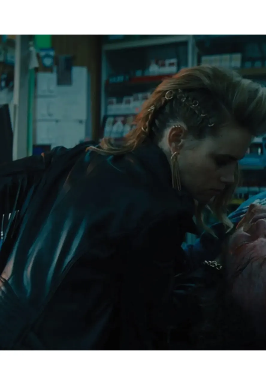 Movie Night Teeth Zoe Lucy Fry Black Leather Jacket