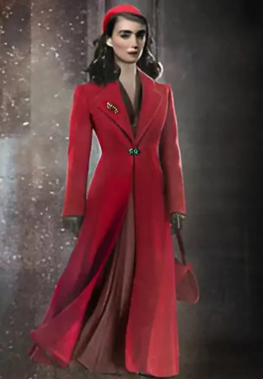 If you want to be gorgeous in a red-colored ensemble then we present the nightmare alley 2021 Rooney mara molly red coat that is crafted by wool blend fabric. The bright red color makes it more attractive to wear. The skin-friendly viscose inwards lining will make you feel comfortable for how long you wear it. The molly coat is stylishly tailored by using attributes like lapel style collar, hook closure, and side waist pockets are nice to carry your cell phone or wallet. This winter enchants everyone through your drop-dead gorgeous look by wearing red trench coat. Now stay warm and be stylish.