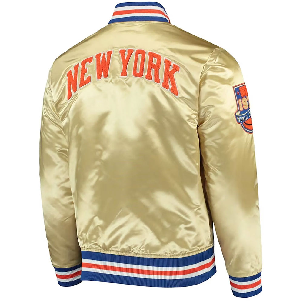 If You Have Great Taste for Varsity Jackets, Then the NY Knicks 1970 Champions Gold Jacket Will Be Your First Choice. Its Premium Quality Satin Fabrication Makes It Light Weighted and Wearable in All Seasons Furthermore Its Soft Viscose Inner Makes It Comfortable to Wear. The Golden Color Makes It Unique. The NY Knicks 1970 Champions Gold Satin Jacket Has Been Styled Using Attributes Like a Rib-knitted Stand-up Collar, Snap Tab Buttoned Closure, Rib-knitted Cuffs, Truly Impressive Hemline, and Side Waist Pockets. the Knicks 1970 Gold Satin Jacket is a Timeless Piece That Adds Charm to Any Outfit.