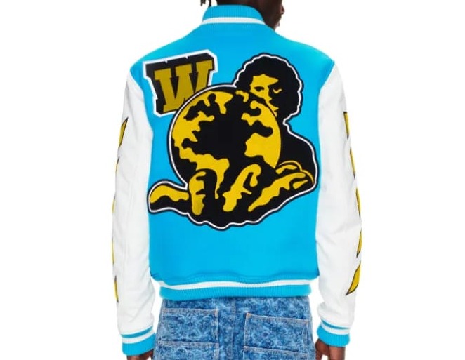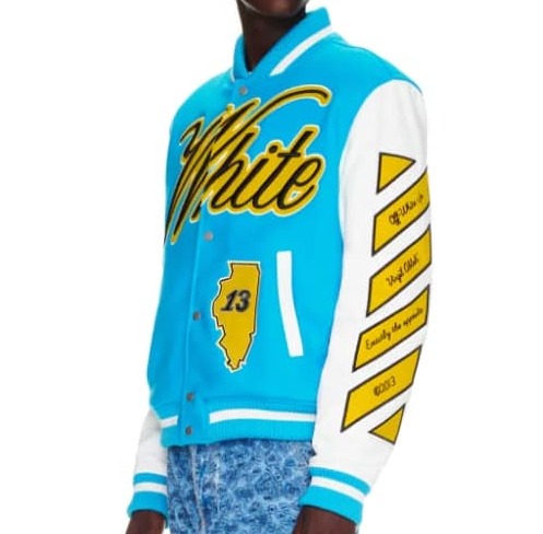 If You Are a Sports Lover, Then You Must Go for the Off White Vars World Leather Jacket That Will Not Only Reshape Your Casual Looks but Also Leave You With Enchanted Personality. It’s Premium Quality Wool and Leather Fabrication Makes It Warm and Elegant and It’s Soft Viscose Inner Will Comfy You as Long as You Wear It. The combination of Off White and Sky Blue Colors Makes It Cool. The Off White Vars World Leather Light Blue Jacket Has Been Designed by Using Features Like a Rib-knitted Stand-up Collar, Snap Tab Buttoned Closure, Rib-knitted Cuffs, and Hemline and Side Waist Pockets. The Vars World Light Blue Jacket Will Make You Casual Looks Adorable and Inspiring.