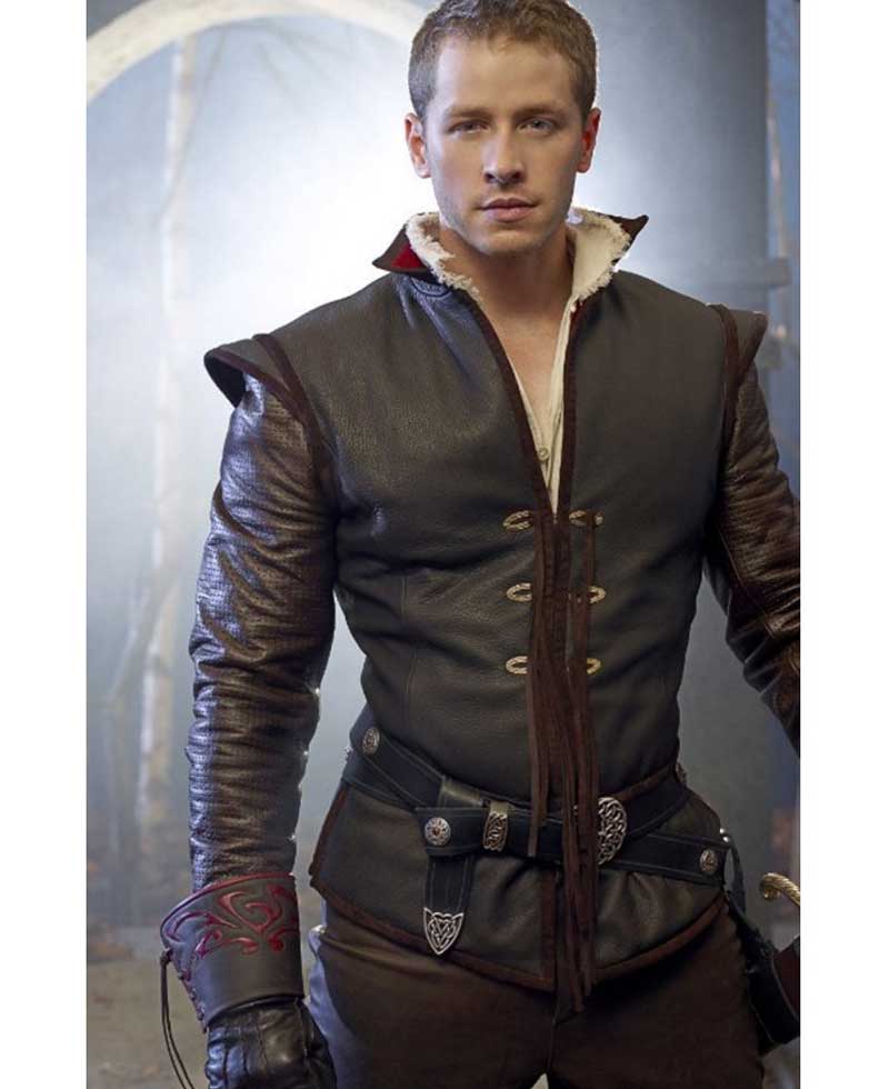 The replica of prince charming jacket has been designed for the fans. It is worn by josh Dallas in his movie Once upon a time. He was looking very charming in this jacket. Prepared from h high qua laity genuine leather w wit h Vis close liner support. The jacket  has stand up collar with elegant lace look closure front add unique style with killer look. Josh Dallas once upon a time jacket has adjustable waist belt increase the beauty of the jacket. It has full sleeves with open hen cuffs the fabulous attire fulfill your all demand prince charming leather jacket gives self confidence to the wearer.