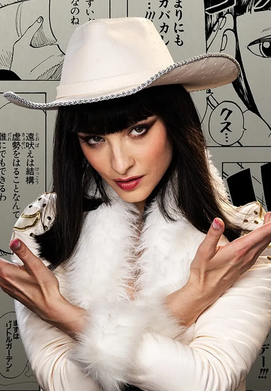 The lera abova white leather coat is based on the coat that Lera Abava wears as Miss All Sunday in One Piece Season 2. The wardrobe of the character is symbolic of sophistication and pride, as she is known to be a strong, personal character with a calm personality. This jacket reinvents the classic appearance for those who are enthusiastic about the series.