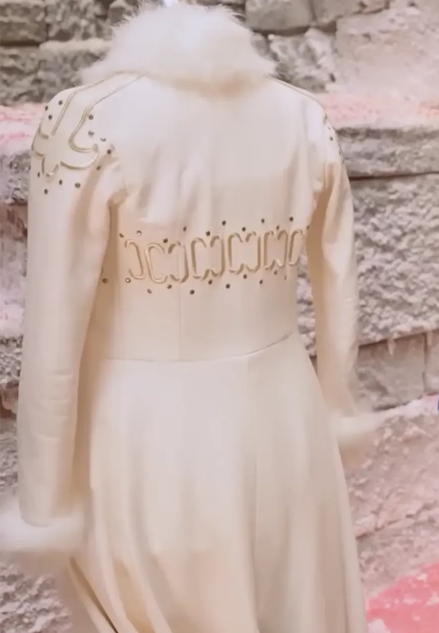 - Elegant white leather coat design