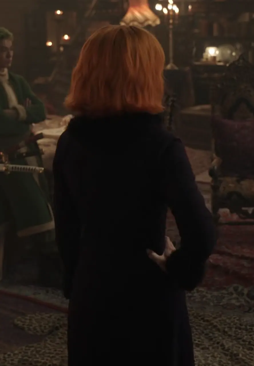 Emily Rudd One Piece 2026 Nami Black Shearling Wool Coat
