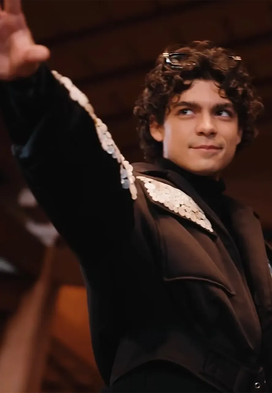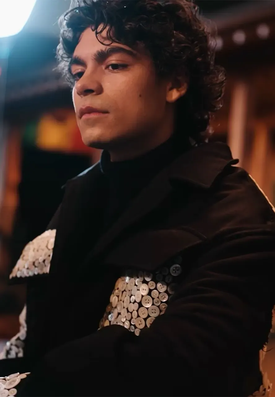 The jacket is a black wool jacket that is inspired by the outfit that Iñaki Godoy wore in the promotion of the One Piece Season 2. His image is characterized by the ideal combination of casual and intelligent style, which is due to his active character and contemporary approach to fashion. This jacket embodies that trademark look for the fans.