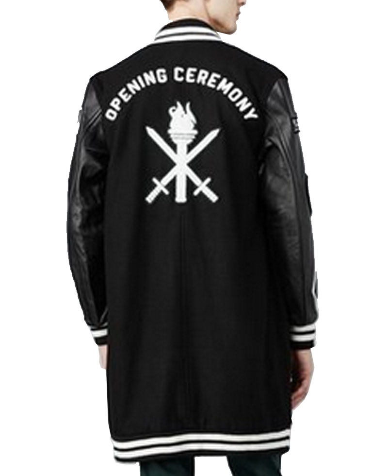 The idea of this perfect trendy long varsity jacket is taken from the famous American singer, rapper, and songwriter Omarion who wore this varsity jacket in the music album called Post To Be. The external side of this varsity jacket is fabricated with wool fabric. High-quality genuine leather material is also used for the sleeves. The internal side of the opening ceremony long varsity jacket is stitched with smooth and soft viscose lining. The jacket comes in black color. It has buttons attached to its front side for closure. Omarion jacket Post to have an erect style collar. The jacket has a rib knitted hemline as well. The opening ceremony long varsity jacket has rib knitted style cuffs on full-length leather sleeves. There are two front waist pockets on this varsity jacket where you can secure stuff. There are patches on the sleeves as well.