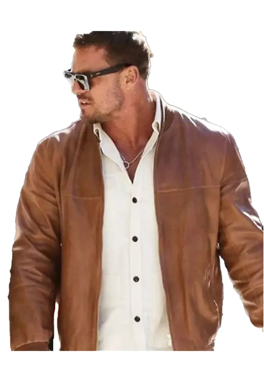 The Ordinary Angels 2024 Alan Ritchson Brown Jacket Looks Like It Was Fashioned Specifically for You Because This Highly Fashioned Jacket Will Add More Glamour and Charm Into Your Personality and Capture All Eyes on You. This Adorable Jacket Has Been Fabricated by Premium-quality Leather to Make It Lightweight and Wearable in All Seasons, While Its Soft Viscose Inner Makes It Comfortable and Moisture-free. The Elegant Brown Color Can Be Worn Over Any Outfit in Your Wardrobe. The Alan Ritchson Jacket Has Been Designed by Using All Smart Features Like a Rib-knitted Stand-up Collar, Smooth Zippered Closure, Rib-knitted Cuffs and Hemline and Side Waist Pockets to Make It More Functional. The Brown Leather Jacket Will Give You Off Such a Confident and Timeless Vibe.
