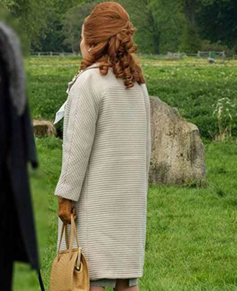 The idea of this mid-length style coat is taken from the American popular crime web television drama series called Pennyworth starring the talented actress Paloma Faith when she was portraying the character of Bet Skyes. The outer part of this coat is fabricated with cotton material of premium quality. On the internal side of this coat is a lining of smooth and soft viscose that keeps you warm and comfortable all the time. The mesmerizing ivory color makes the appeal to this coat more attractive. Bet Skyes coat has buttons on its front side for the closure. The coat comes with open hem style cuffs on full-length style sleeves. Pennyworth Paloma Faith coat has a turndown style collar. The coat comes with two front-side pockets where you can keep stuff. It is a perfect outwear for a casual or formal event. This coat is the exact replica of the original one.