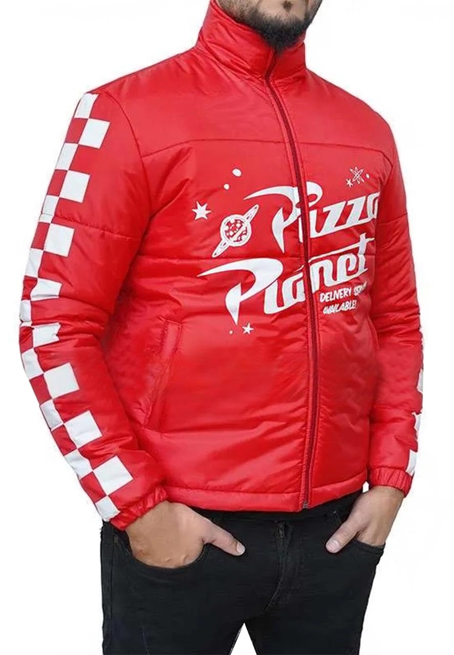The Pizza Planet Red Jacket Has Been Designed for All Those Who Like to Wear outfits that Goes Well With Any Outfit in Your Wardrobe. This Cool Jacket Will Look So Flattering on You. The Pizza Planet Jacket Has Been Crafted From High-Quality Parachute to Make It Ageless and Warm. Furthermore, Its Soft Viscose Inner Will Keep You Sweat-free All Day Long. The Elegant Red Color Will Enhance Your Bold Personality. The Pizza Planet Red Puffer Jacket Has Been Tailored by Using Features Like a Stand-up Collar, Smooth Zippered Closure, and Two Side Waist and Inner Pockets. The Red Puffer Jacket Will Let You Rock Any Occasion.