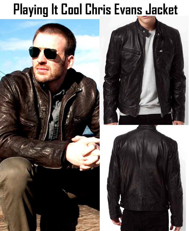 Playing It Cool Chris Evans Jacket is only for those who dare to change their previous style and want to look impeccable. You will get the heroic look just like the superb hero Chris Evans. The genuine leather is used in the formation of outer part and the black shade has increased its uniqueness. The idea of the outfit is conceived from a famous movie named as “Playing It Cool”. It was romantic and comedy film that was obtained extraordinary popularity. Chris Evans Playing It Cool Jacket has rayon inner which is very durable. The stand up neckline is added with snap button. The forefront shutting is connected with YKK zip. Chris Evans performed as “Me” in the movie. The stand up collar forms your loyal appearance. Two horizontal zipper pockets are present on chest whereas two side waist pockets are also added. Playing It Cool Chris Evans Leather Jacket has long sleeves with fitting. Buttoned cuffs have enhanced the beauty.