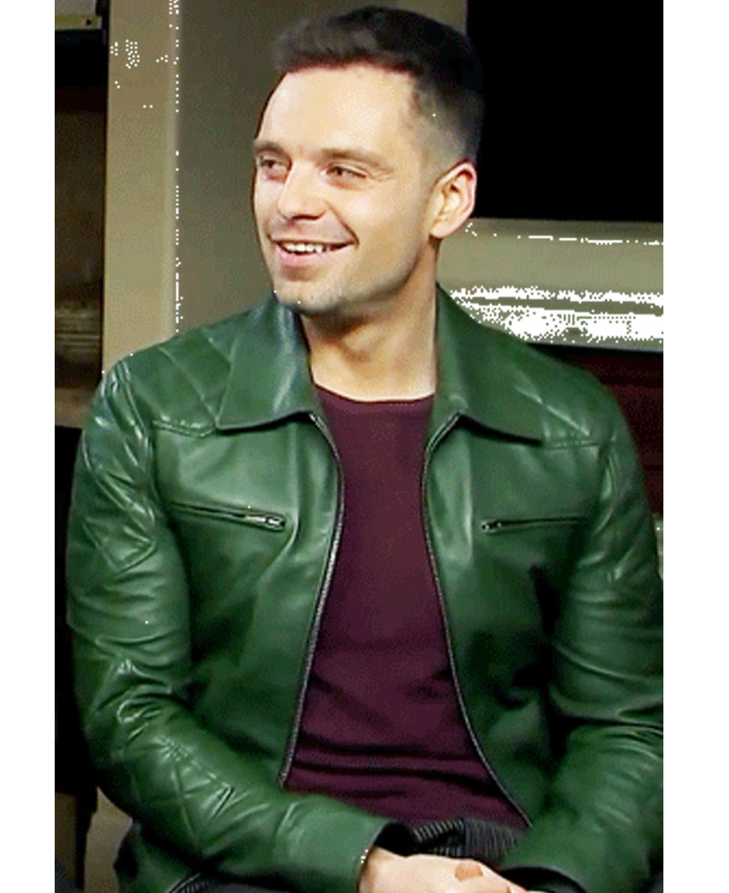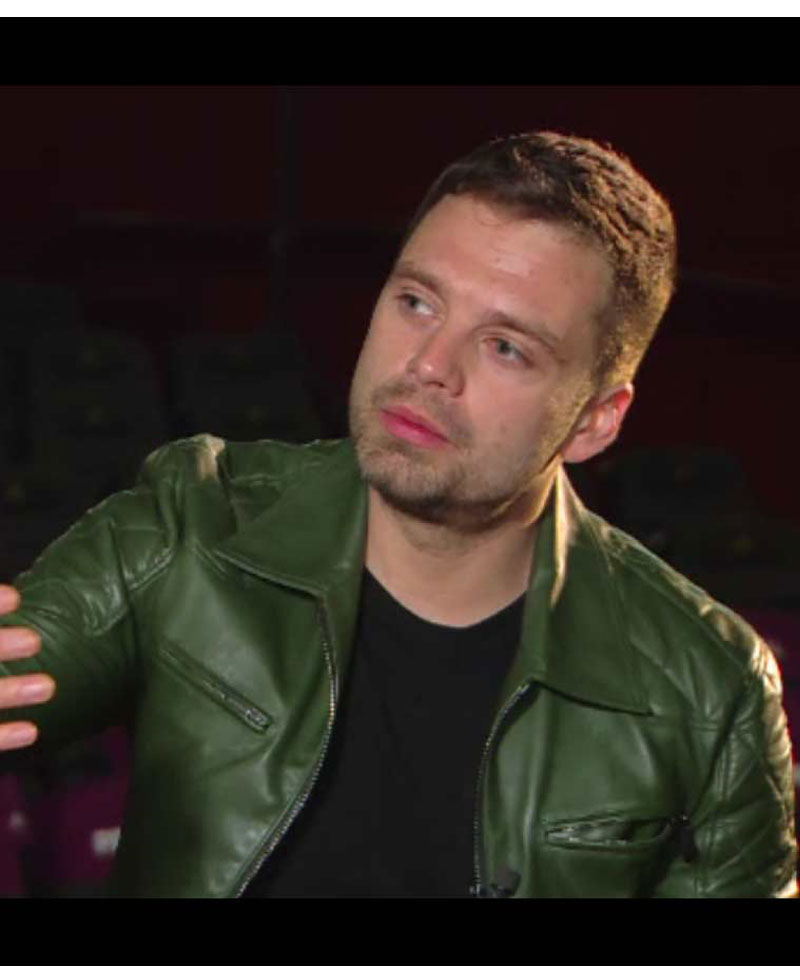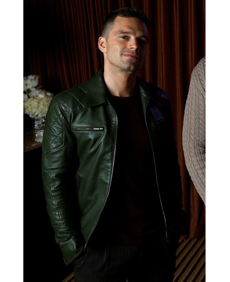 This attractive quilted style biker leather jacket was worn by the famous and talented American Romanian actor Sebastian Stan who was seen wearing this jacket. The biker jacket comes in vibrant green color. The external side of this jacket is manufactured by using rich and premium quality genuine leather material. Sebastian Stan Green leather jacket has an internal lining of smooth and soft viscose attached that keeps you warm and comfy all the time. There is a ykk branded zipper attached to the front side of this Sebastian Stan Green leather jacket for the closure. The jacket comes with a shirt style collar. Sebastian Stan quilted Green leather jacket has buttoned style cuffs on full length style sleeves. This leather jacket comes with two front waist pockets and two inner pockets where you can secure stuff.Â