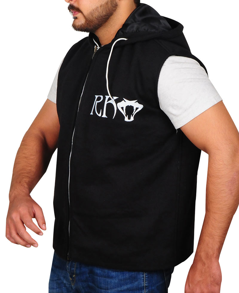 Randy Orton Jacket is made from pure fleece fabric. It has front zipper closure. It has a hoodie and unique sleeveless design. Randy Orton Vest has collarless design and a yellow color snake logo at front and back both with letters “RK” on it at the front on the chest .Black color that suits every soul. It will turn you into a real wrestler immediately. So why are you waiting? Get Randy Orton Hoodie and look awesome now!