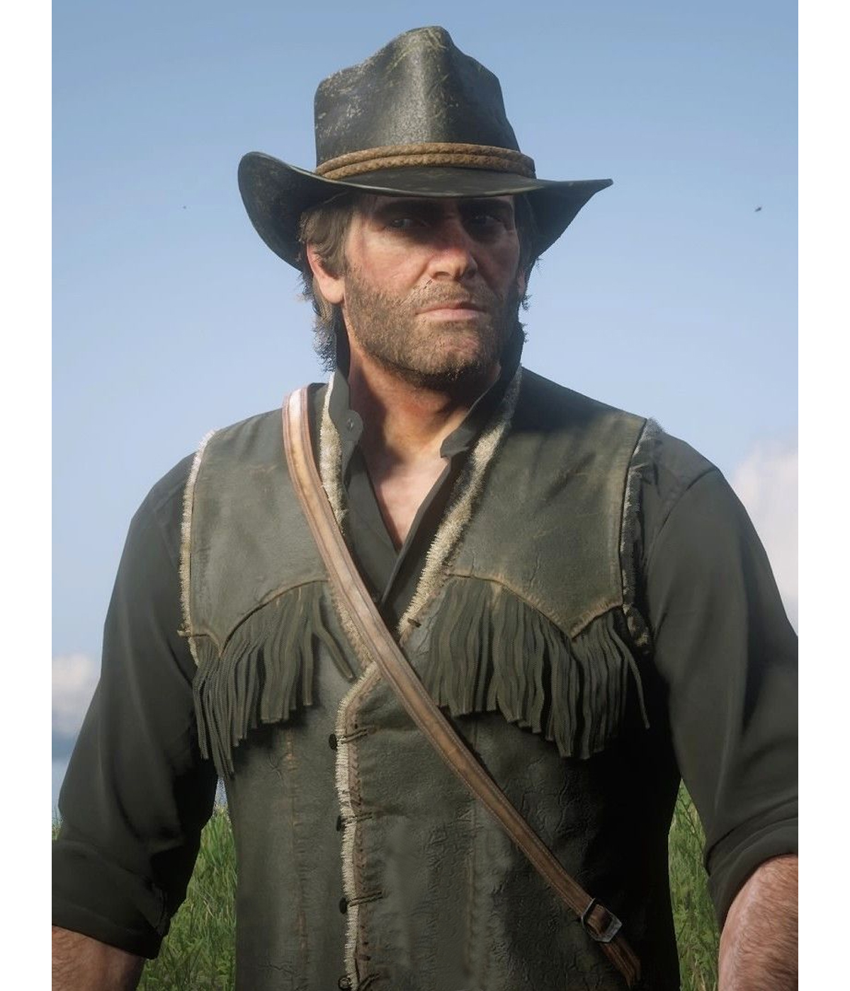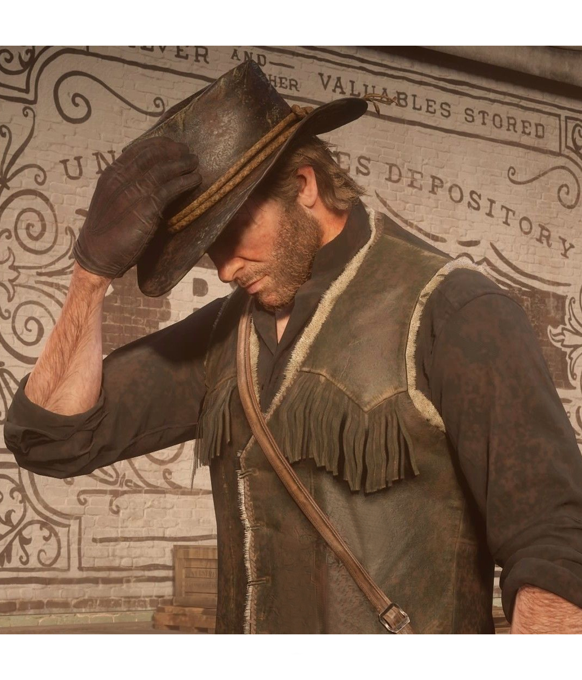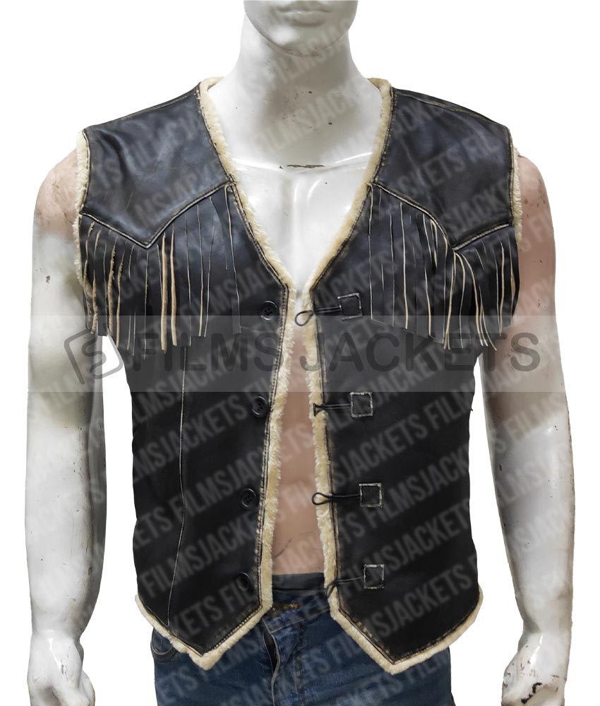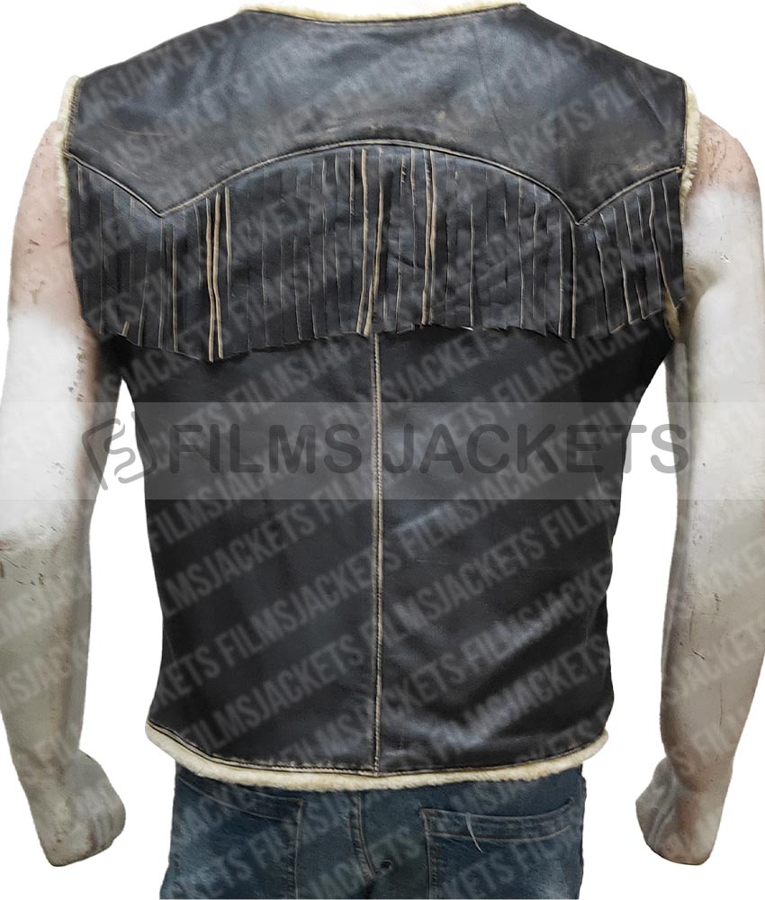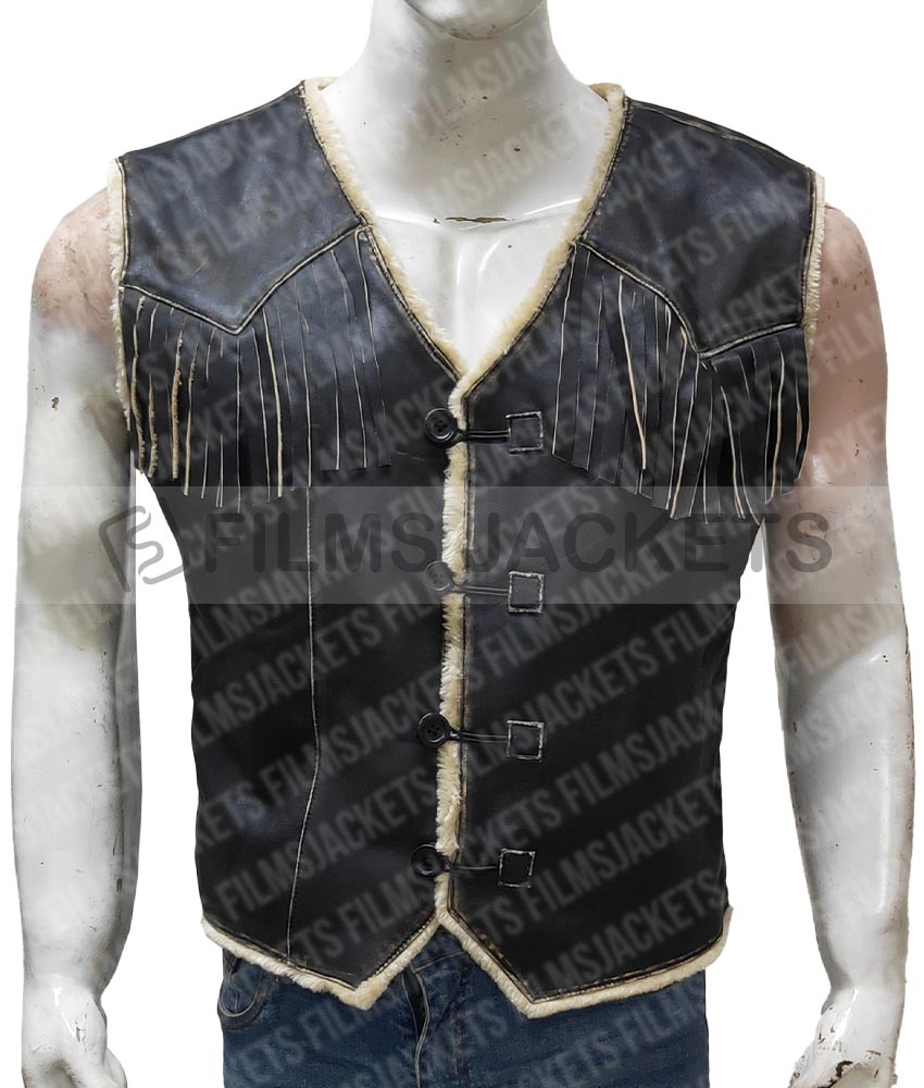 RDR2 Arthur Morgan Black Leather Fringe Shearling Vest